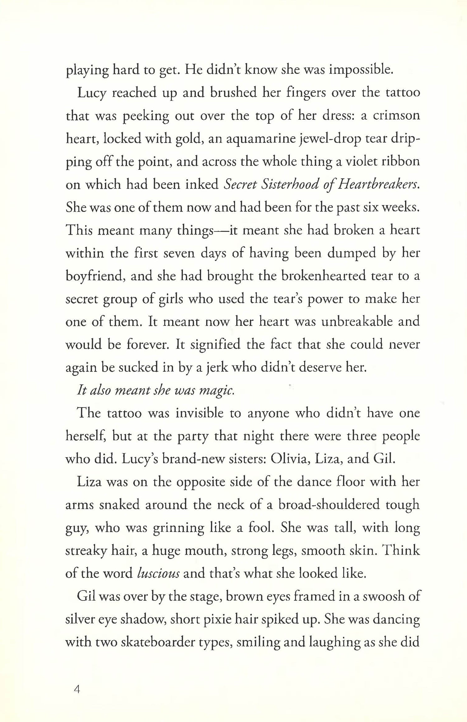 In the magical sequel to The Secret Sisterhood of Heartbreakers by Lynn Weingarten, Lucy must break the sisterhood's curse before she loses her chance at true love. *This Book May Have Remainder Mark* Since she joined the Secret Sisterhood of Heartbreakers, Lucy's life has been perfect. Girls want to be her. Boys want to date her. She has access to magic. And her broken heart has completely healed. Her only regret is that her best friend, Tristan, is still hurting from her rejection. As she searches for a way to heal Tristan's heart, she discovers the truth behind her initiation into the sisterhood--and that her sisters have unimaginable secrets they've been keeping from her. Trapped in a group she no longer trusts, Lucy realizes it just might be better to risk a broken heart than to never fall in love again. show more