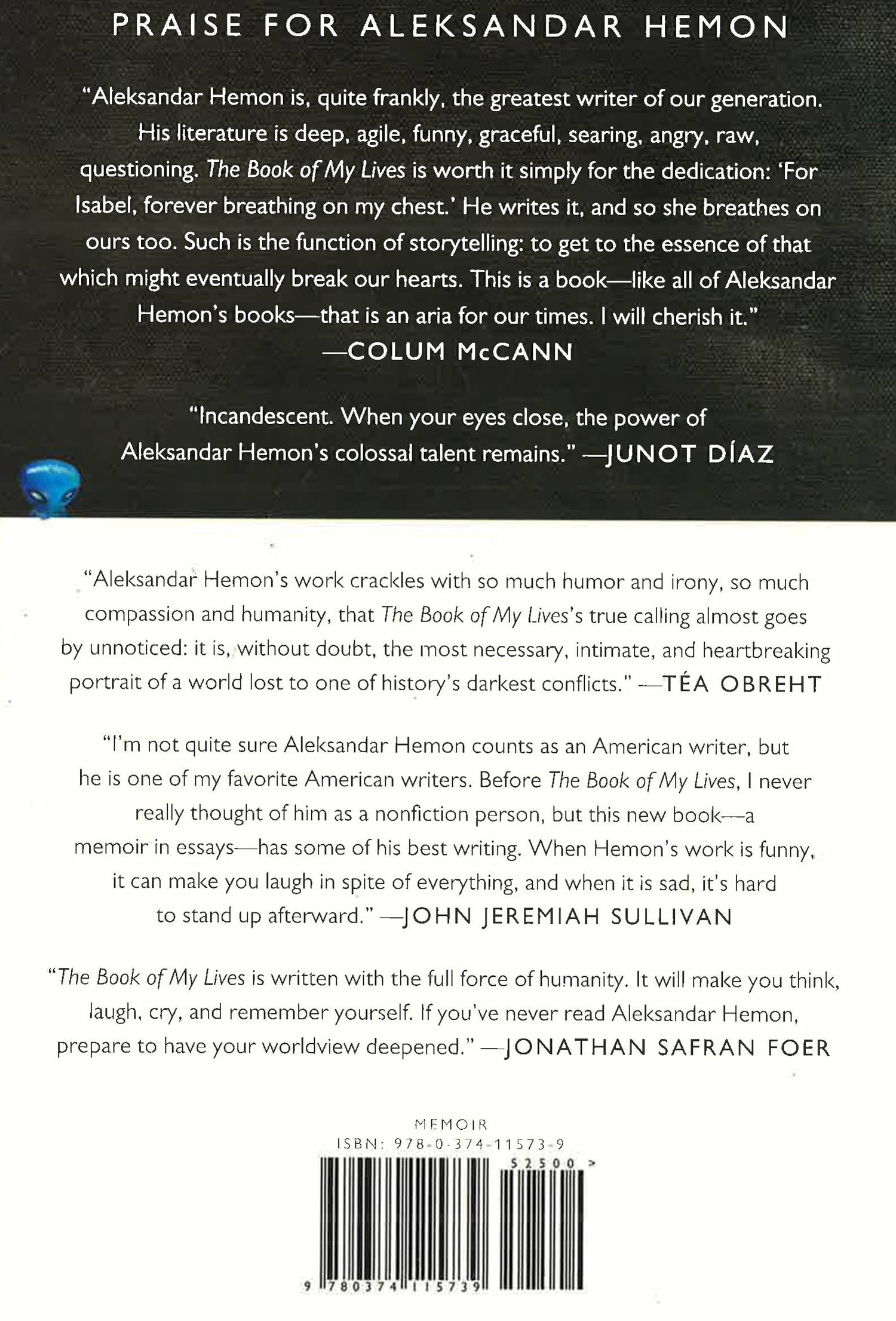 The Book of My Lives, Hemon's first book of nonfiction, defies convention and expectation. It is a love song to two different cities; it is a heartbreaking paean to the bonds of family; it is a stirring exhortation to go out and play soccer - and not for the exercise. It is a book driven by passions but built on fierce intelligence, devastating experience, and sharp insight. And like the best narratives, it is a book that will leave you a different reader - a different person, with a new way of looking at the world - when you've finished. For fans of Hemon's fiction, The Book of My Lives is simply indispensable; for the uninitiated, it is the perfect introduction to one of the great writers of our time.