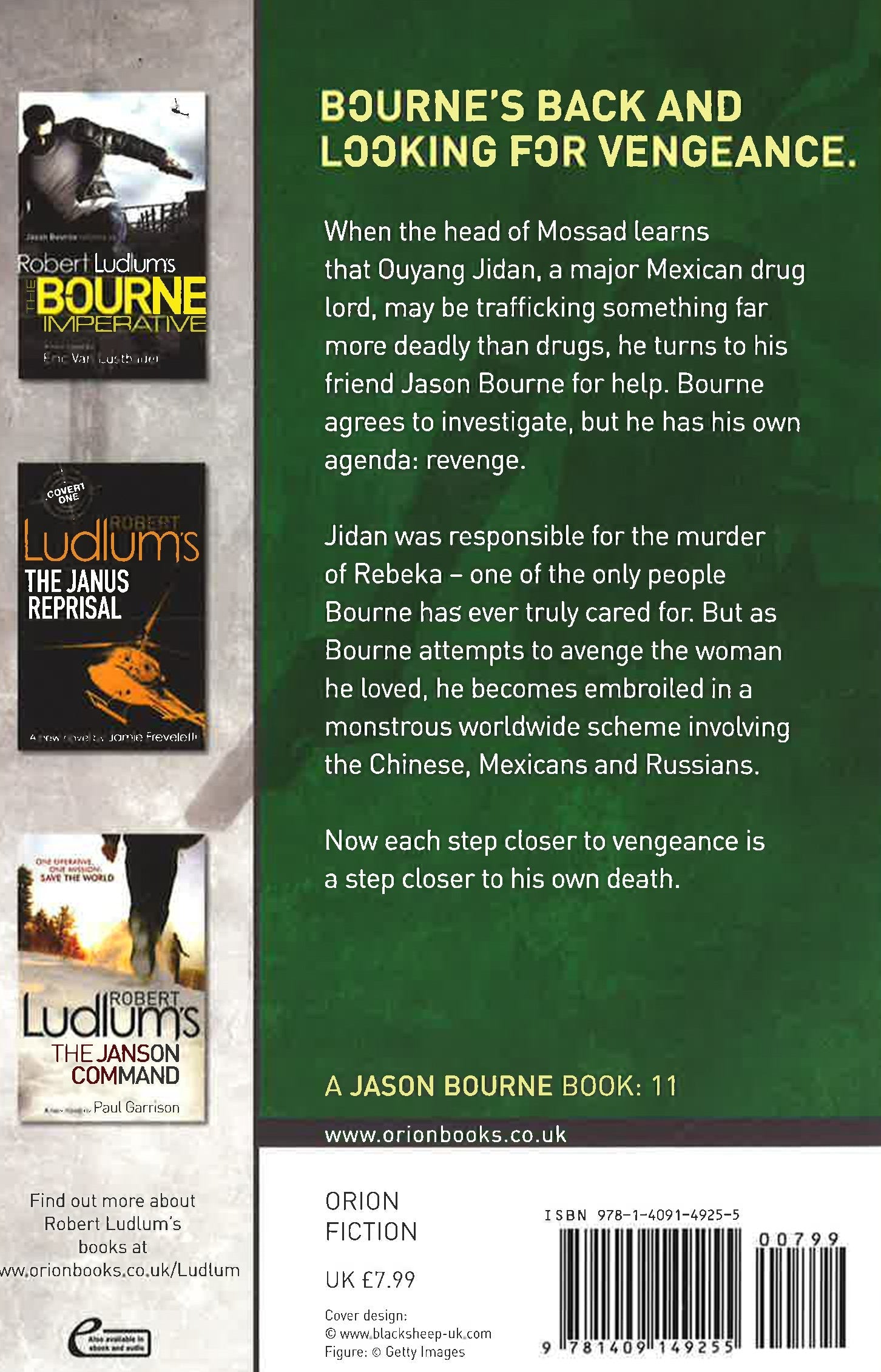 Jason Bourne is back in the forthcoming major motion picture starring Matt Damon and Alicia Vikander. Go back to where it all began for Bourne in his original adventures. 'Watch your back 007 - Bourne is out to get you' - Sunday Times When the head of Mossad learns that a major Mexican drug lord may be trafficking something far more deadly than drugs, he turns to his friend Jason Bourne for help. Bourne agrees to investigate, but he has his own agenda: revenge. The drug lord is responsible for the murder of Rebeka - one of the only people Bourne has ever truly cared for. But as Bourne attempts to avenge the woman he loved, he becomes embroiled in a monstrous world-wide scheme involving the Chinese, Mexicans, and Russians. Each step closer to vengeance is a step closer to his own death.