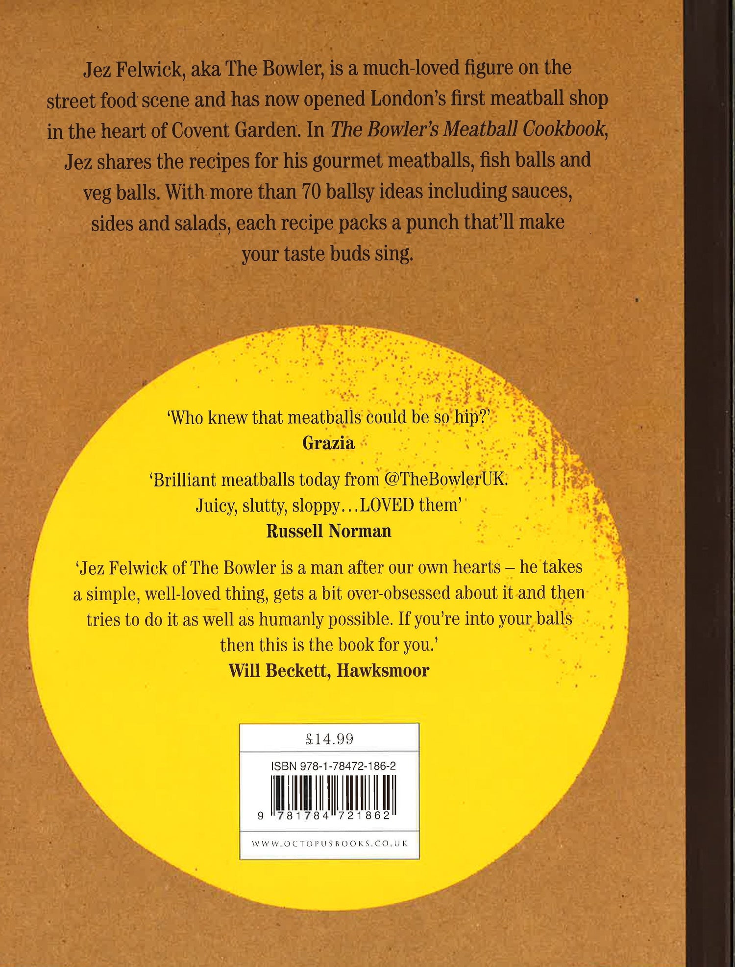 Meatballs are one of the hot new food trends - fabulous, friendly comfort food everyone will love - and Jez Felwick, aka The Bowler, is the hottest food merchant on the streets of London, renowned for his gourmet meatballs, fish balls and veg balls. In this revolutionary cookbook, Jez brings a magical combination of flavours from the street into your home. Containing recipes ranging from the perennially popular Great Balls of Fire - made with pork, beef, ricotta and chilli and served in a Spiced Red Onion and Tomato Sauce - to lightly scented Wasabi Salmon and Sesame fish balls with Citrus Ponzu Dressing. With more than 70 ballistic ideas including original sauces, sides and salads, each recipe packs a punch that'll make your taste buds sing.