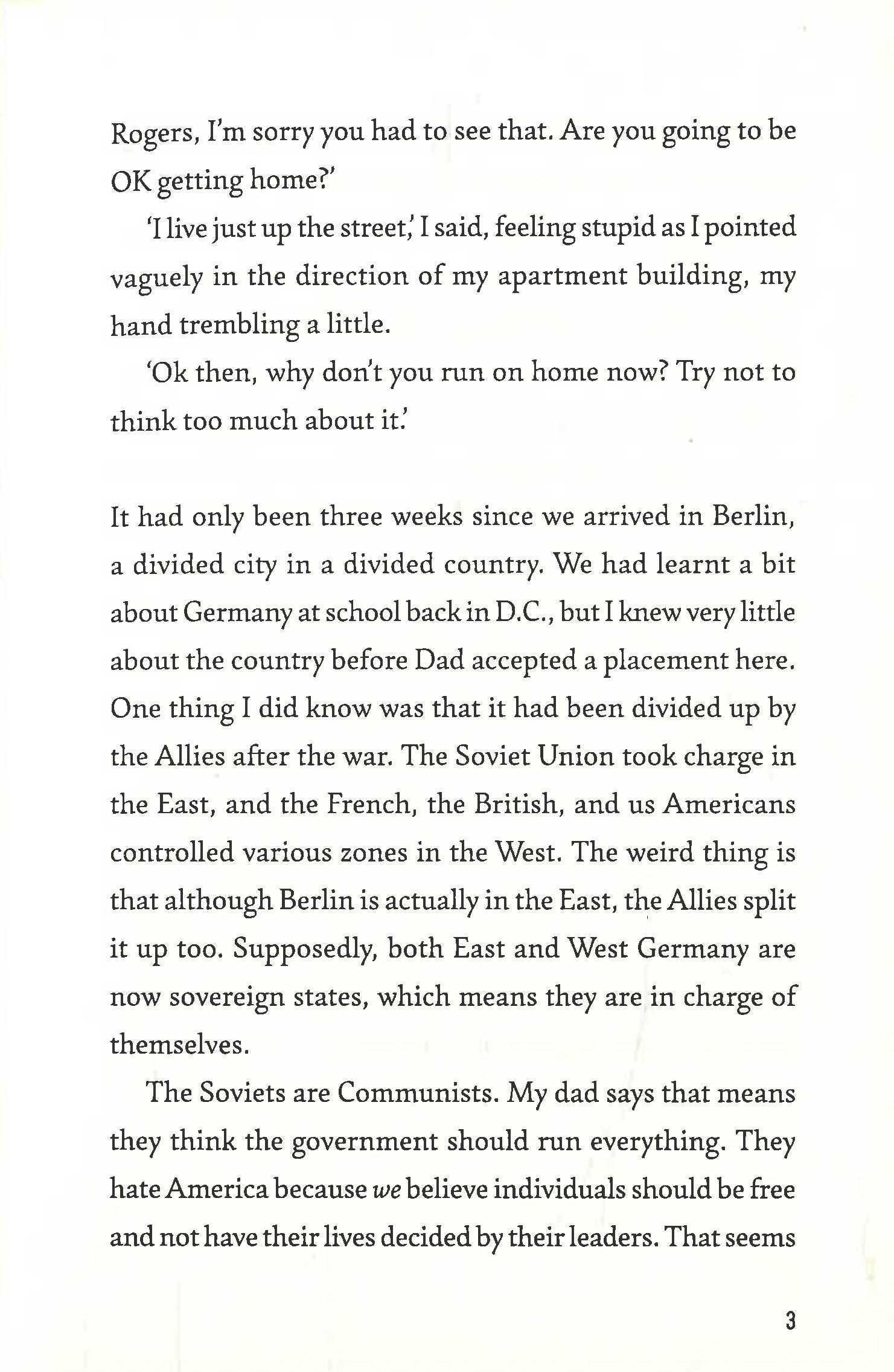 In 1960s Berlin the Wall is everywhere. It cuts through streets, parks, even houses. Teenagers Harry and Jakob live either side of the divide.