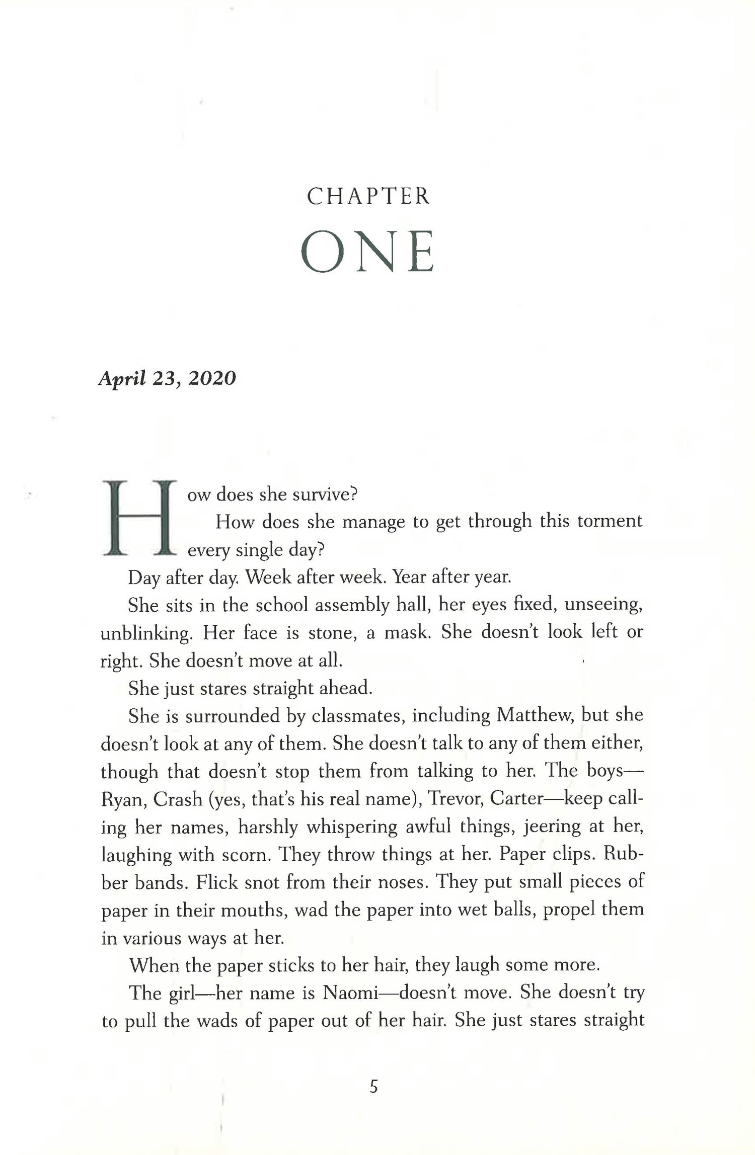 No one seems to take Naomi Pine's disappearance seriously, not even her father—with one exception. Hester Crimstein, a television criminal attorney, knows through her grandson that Naomi was relentlessly bullied at school. Hester asks Wilde—with whom she shares a tragic connection—to use his unique skills to help find Naomi.