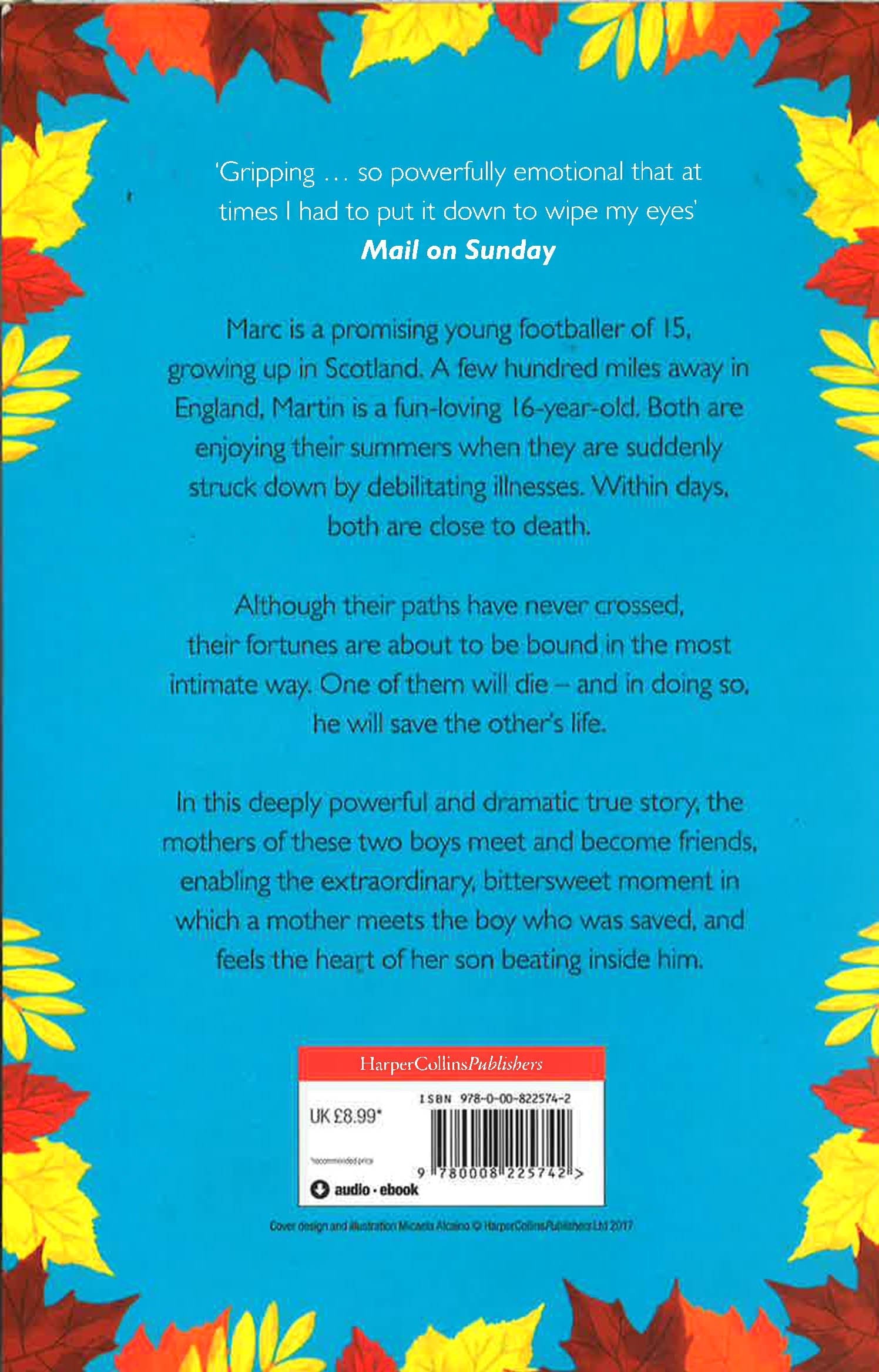 This is a deeply powerful and dramatic story. It is extremely rare for the family of a donor to have any personal contact with the recipient of their loved one's organ. Yet remarkably, the mothers of these two boys meet and become friends, enabling the extraordinary, bittersweet moment in which a mother who has lost her son meets the boy he saved. Reaching out and placing her palm flat against his chest, she feels the heart of her son beating away inside another. Her boy, the boy who gave his heart away.