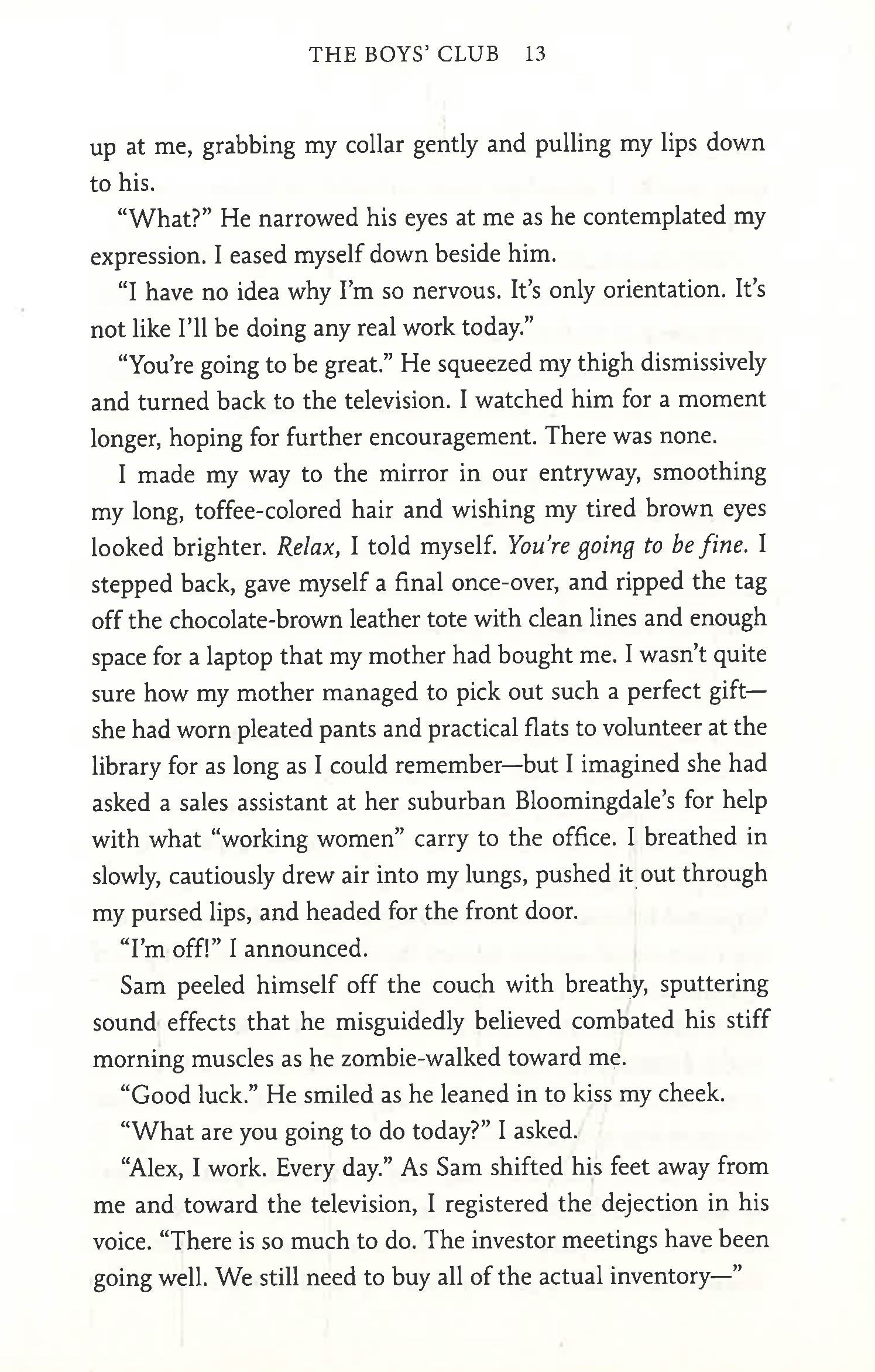 But as her clients&; expectations and demands on her increase, and Alex finds herself magnetically drawn to a handsome coworker despite her loving relationship at home, she begins to question everything&;including herself. She knows the corporate world isn&;t black and white, and that to reach the top means playing by different rules. But who made those rules? And what if the system rigged so that women can&;t win, anyway?