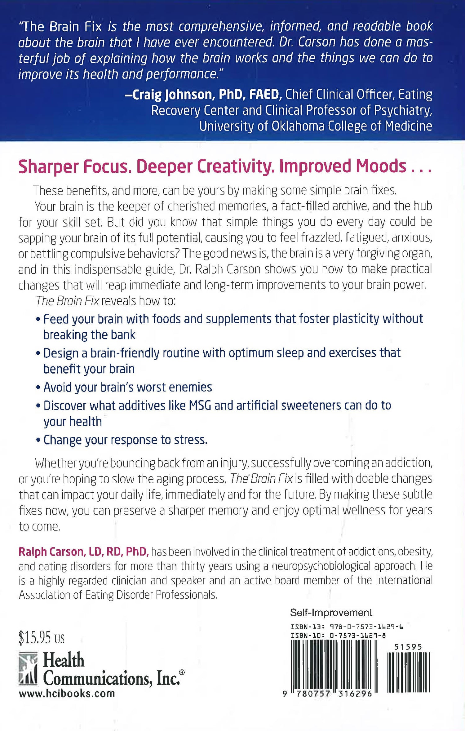 The Brain Fix, Carson reveals an arsenal of proven tools and techniques that help regenerate new cells and connections in the brain. He shares a myriad of simple changes to make in your environment, diet, sleep habits, exercise routines, and emotional life that will yield both immediate and long-term changes to your brain.