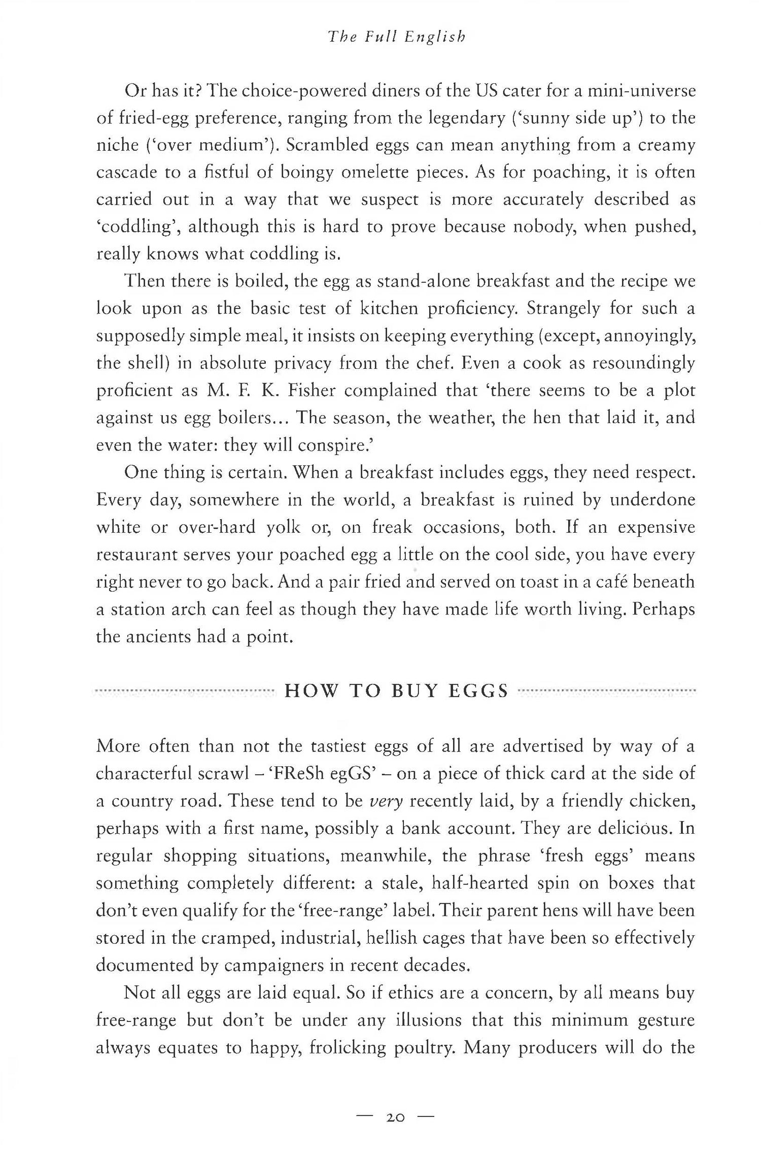 When it comes to the most important meal of the day, this is the book to end all books--a delectable selection of recipes, advice, illustrations, and miscellany. The recipes in this robust volume begin with the iconic full English--which can mean anything as long as there are eggs, bacon, sausages, mushrooms, tomatoes, black pudding, bread, potatoes, and beans involved--before moving confidently on to more exotic fare such as kedgeree, omelet Arnold Bennett, waffles, American muffins, porridge, roast peaches, chana masala from India, borek from the Balkans, and pão de queijo from South America. There are also useful tips like the top songs to boil an egg to, and how to store mushrooms. Interspersing the practicalities of putting together a good breakfast are essays and miscellanies from a crack team of eggsperts--among them H. P. Seuss, Blake Pudding, Poppy Tartt, and Malcolm Eggs--who offer their musings on such varied topics as forgotten breakfast cereals of the 1980s, famous last breakfasts, and Freud's famous Breakfast Dream. Whether you are a cereal purist, a dedicated fan of eggs and bacon, or a breakfast aficionado with a world view, The Breakfast Bible is the most important book of the day.