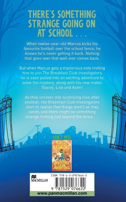 When twelve-year-old Marcus kicks his favourite football over the school fence, he knows he's never getting it back. Nothing that goes over that wall ever comes back. But when Marcus gets a mysterious note inviting him to join the Breakfast Club Investigators, he is soon pulled into an exciting adventure with his new mates Stacey, Lise and Asim to solve the mystery and get his football back!