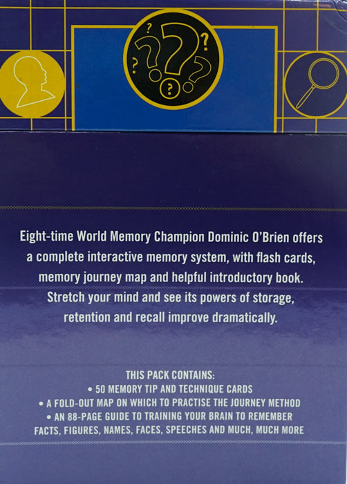 In this highly original publishing package Dominic O'Brien reveals the secrets of mastering the art of memory and provides us with a basic tool kit for boosting our skills of memorization and recall. The kit consists of three components: a 88-page introduction to memory techniques that reveals the what, the why and the how of Dominic's proven methods; a pictorial memory journey map to be used in conjunction with the Journey Method, a basic and highly versatile memorization procedure that exploits the power of mental association to provide unforgettable cues for recall; and, lastly, a deck of 50 flash cards providing tips and techniques (and self-testing exercises) on one side, and, on the other, numbers and drawn objects to practise on, using the journey map or other tricks of the trade described in the book. The key to improving your memory is two-fold: knowing the expert methods devised by one of the most retentive and focused brains in the world, and practising them until you see marked improvements in your performance. This tool kit is all you'll need to train yourself to be a memory maestro.