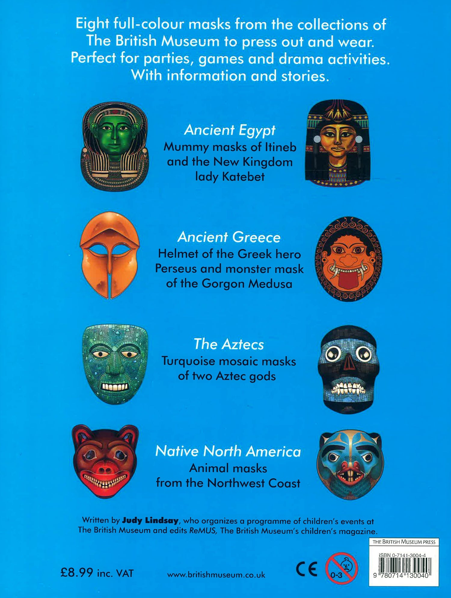 The wearing of masks is one of the most ancient human activities, and remains as popular as ever today. This book provides eight colourful masks to press out and wear. Ideal for parties, role-playing games, theatrical activities and imaginative play, the masks are accompanied by colour reproductions of the originals and information about where they came from. Feature panels in large type describe the characters represented in the masks and tell the stories that link them.
