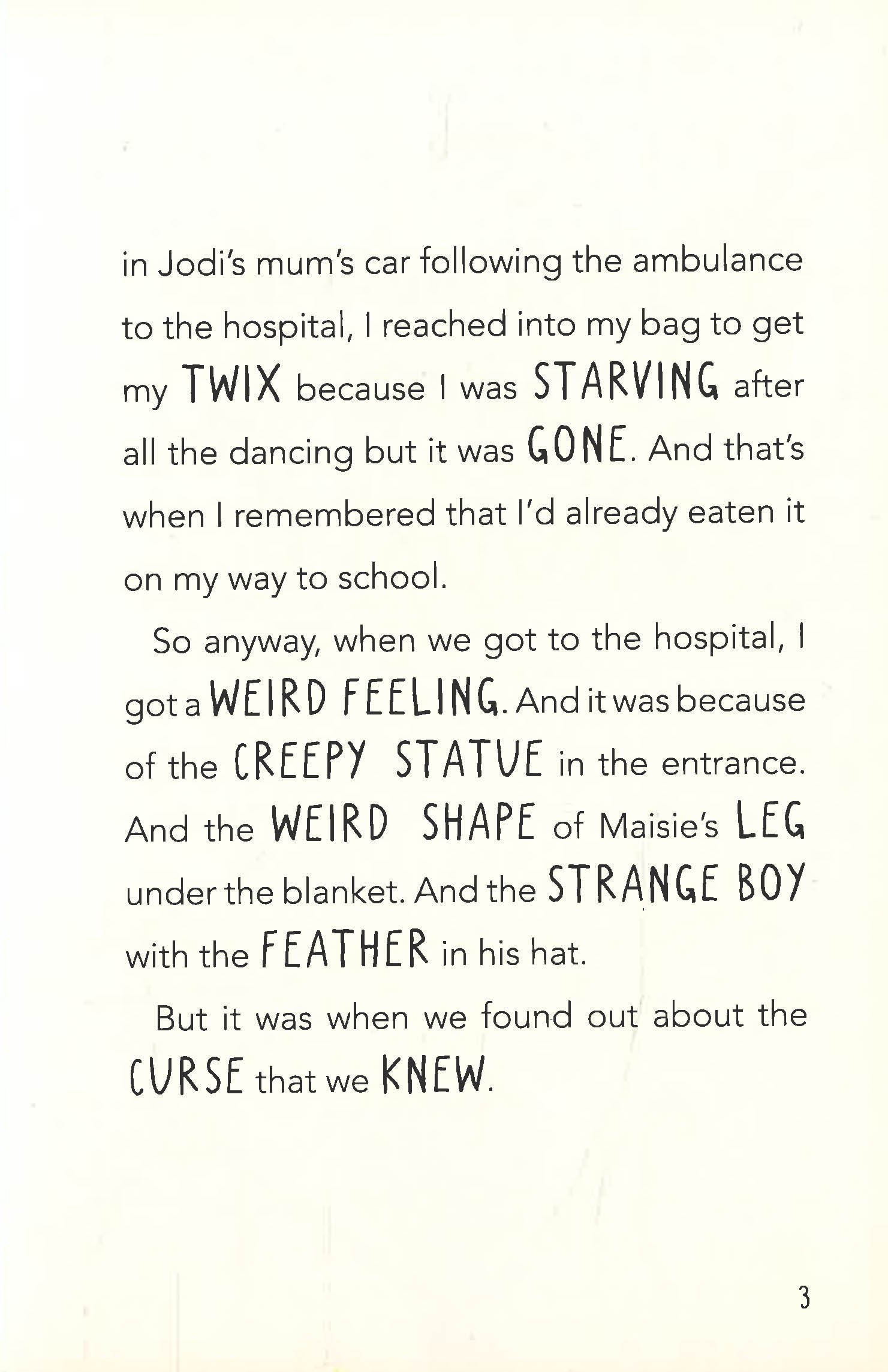 Hilarious, illustrated school-based antics where everything that happens leads to DRAMA and RUNNING AROUND and even some FAINTING! When a session of extreme dancing leaves Maisie in hospital with a broken leg, things take a turn for the weird! Strange noises in the ward at night, missing cuddly toys and a sandwich trolley that only ever has TUNA sandwiches. Could Maisie's leg be CURSED? If it is, and it DEFINITELY IS, then everything is DOOMED! Laugh-out-loud fun from Blue Peter Award winners Pamela Butchart and Thomas Flintham. Read more of Izzy's adventures! Baby Aliens Got My Teacher The Spy Who Loved School Dinners My Headteacher Is a Vampire Rat Attack of the Demon Dinner Ladies To Wee Or Not To Wee! There's a Werewolf In My Tent! The Phantom Lollipop Man! There's a Yeti in the Playground! Icarus Was Ridiculous