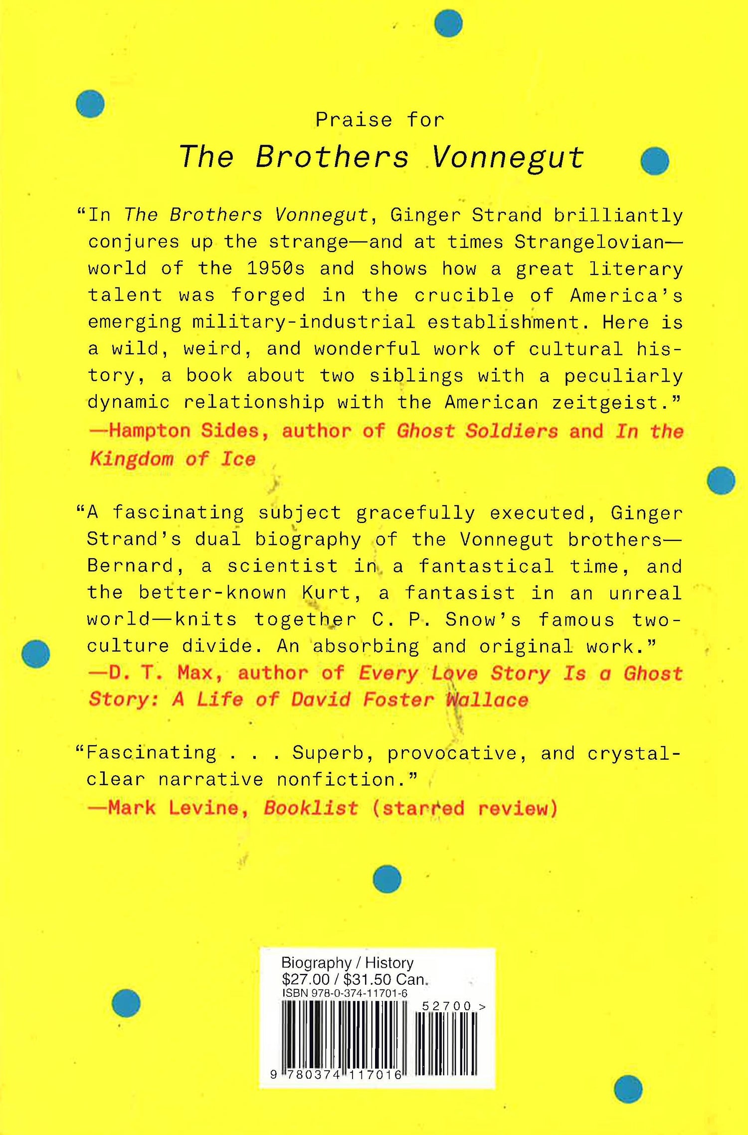 In a fascinating cultural history, Ginger Strand chronicles the intersection of these brothers' lives at a time when the possibilities of science seemed infinite. As the Cold War looms, Bernard's struggle for integrity plays out in Kurt's evolving writing style. The Brothers Vonnegut reveals how science's ability to influence the natural world also influenced one of our most inventive novelists.