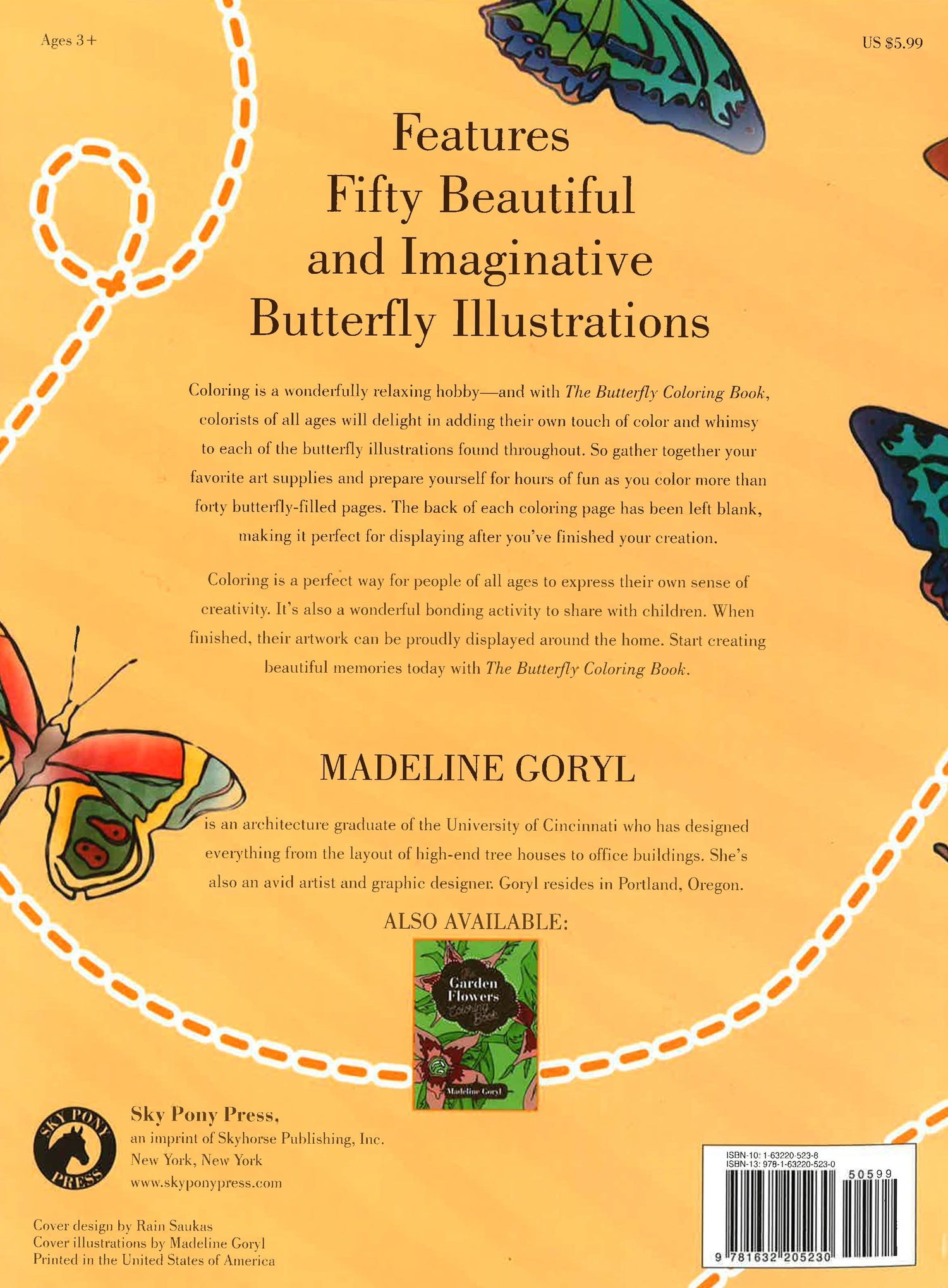Coloring is a wonderfully relaxing hobby...and with The Butterfly Coloring Book, colorists of all ages will delight in adding their own touch of color and whimsy to each of the butterfly illustrations found throughout. So gather together your favorite art supplies and prepare yourself for hours of fun as you color over forty butterfly-filled pages. The back of each coloring page has been left blank, making it perfect for displaying after you've finished your creation. Coloring is a perfect way for people of all ages to express their own sense of creativity. It's also a wonderful bonding activity to share with children, and when finished, their artwork can be proudly displayed around the home. Start creating beautiful memories today with The Butterfly Coloring Book.
