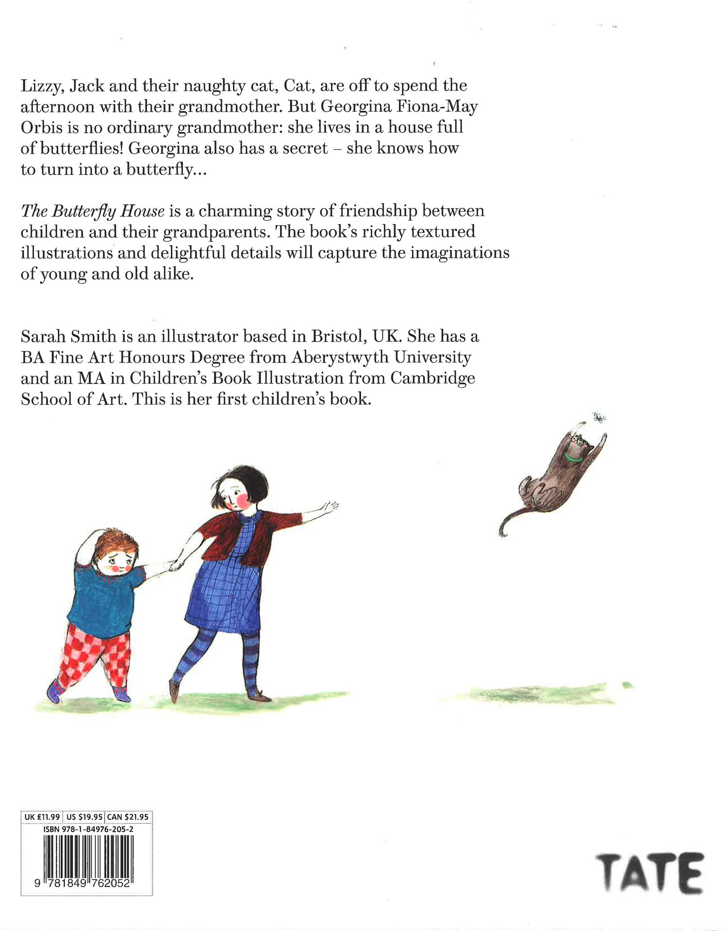 Jack, Lizzy and their naughty cat, Cat, are off to spend the afternoon with their grandmother. But Georgina Fiona-May Orbis is no ordinary grandmother: she lives in a house full of butterflies! Georgina also has a secret - she knows how to turn into a butterfly - The Butterfly House is a charming story of friendship between children and their grandparents from one of the youngest talents in British illustration, Sarah Smith. The book's richly textured illustrations and delightful details will capture the imaginations of young and old alike.
