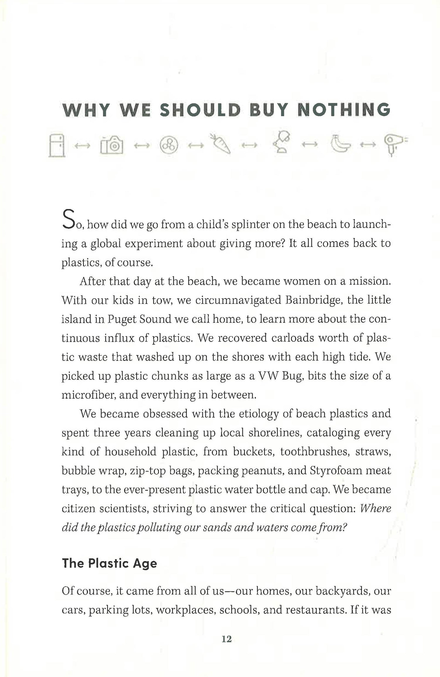 In their island community, Clark and Rockefeller discovered that the beaches of Puget Sound were spoiled by a daily influx of plastic items and trash washing on shore. From pens and toothbrushes to toys and straws, they wondered, where did it all come from? Of course, it comes from us—our homes, our backyards, our cars, and workplaces. And so, a rallying cry against excess stuff was born.