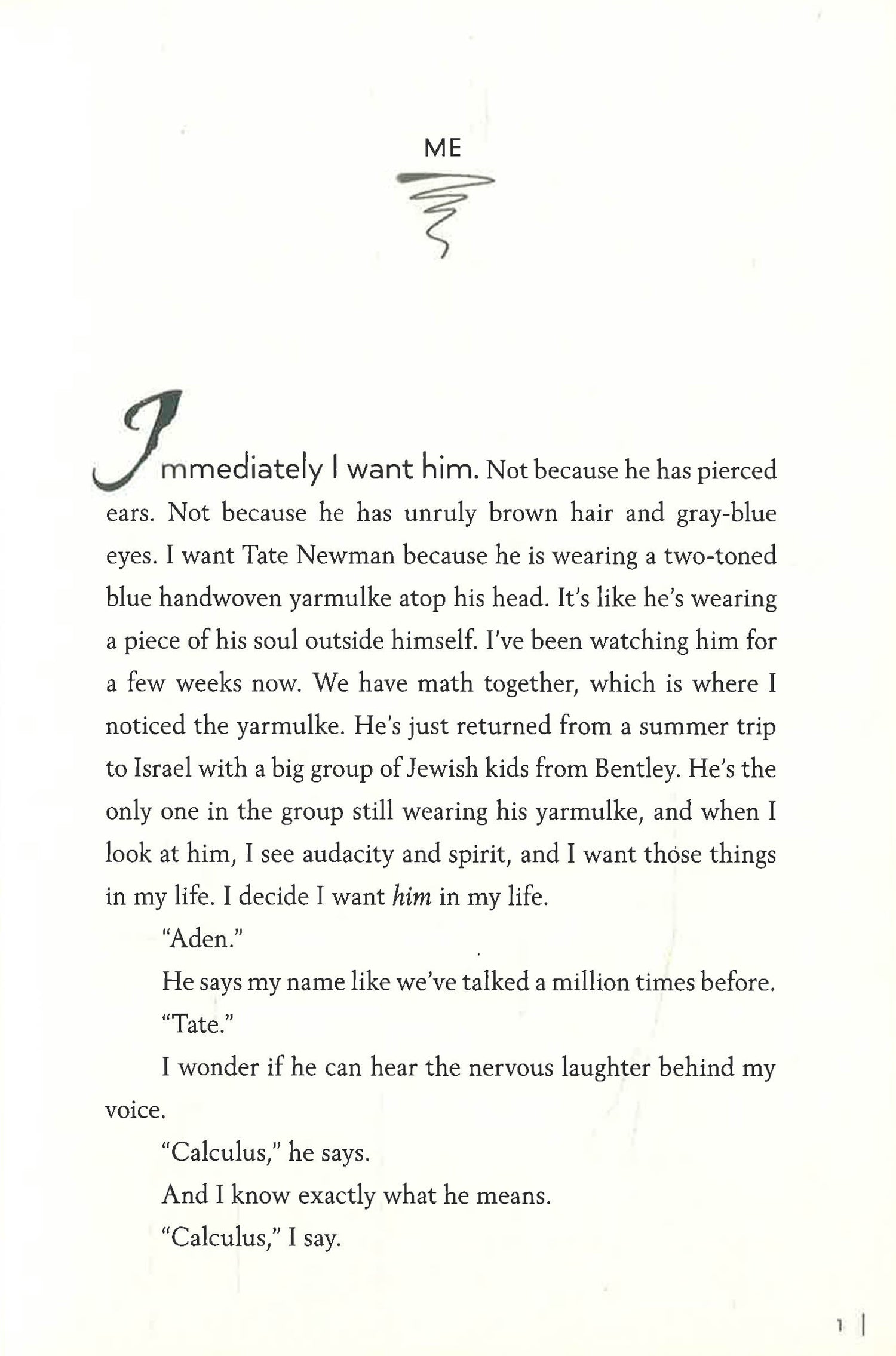 Aden isn't looking for love in her senior year. She's much more focused on things like getting a solo gig at Ike's and keeping her brother from illegal herbal recreation. But when Tate walks into Calculus class wearing a yarmulke and a grin, Aden's heart is gone in an instant.