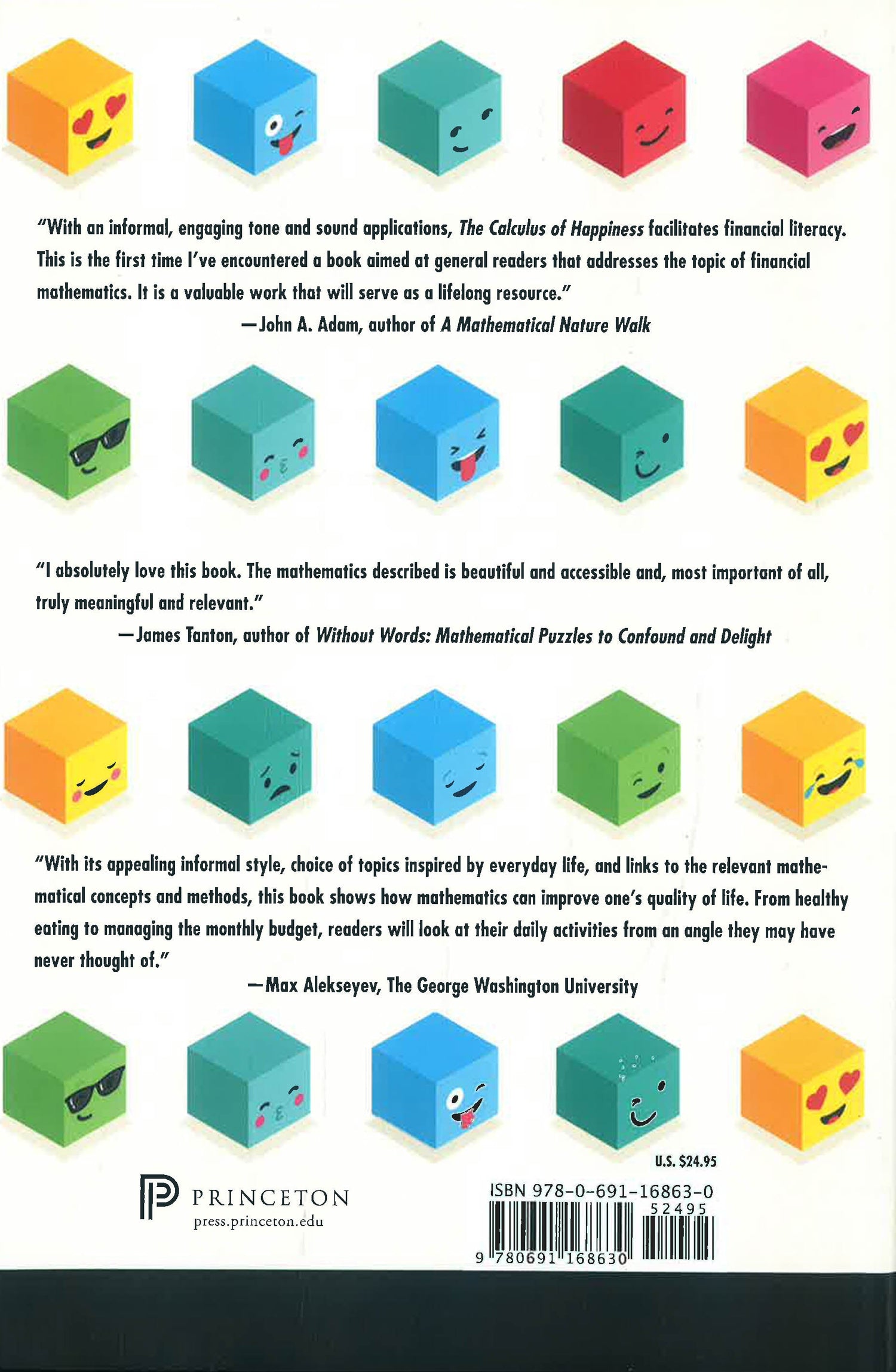 How math holds the keys to improving one's health, wealth, and love life What's the best diet for overall health and weight management? How can we change our finances to retire earlier? How can we maximize our chances of finding our soul mate? In The Calculus of Happiness, Oscar Fernandez shows us that math yields powerful insights into health, wealth, and love. Using only high-school-level math (precalculus with a dash of calculus), Fernandez guides us through several of the surprising results, including an easy rule of thumb for choosing foods that lower our risk for developing diabetes (and that help us lose weight too), simple "all-weather" investment portfolios with great returns, and math-backed strategies for achieving financial independence and searching for our soul mate. Moreover, the important formulas are linked to a dozen free online interactive calculators on the book's website, allowing one to personalize the equations. Fernandez uses everyday experiences--such as visiting a coffee shop--to provide context for his mathematical insights, making the math discussed more accessible, real-world, and relevant to our daily lives. Every chapter ends with a summary of essential lessons and takeaways, and for advanced math fans, Fernandez includes the mathematical derivations in the appendices. A nutrition, personal finance, and relationship how-to guide all in one, The Calculus of Happiness invites you to discover how empowering mathematics can be.
