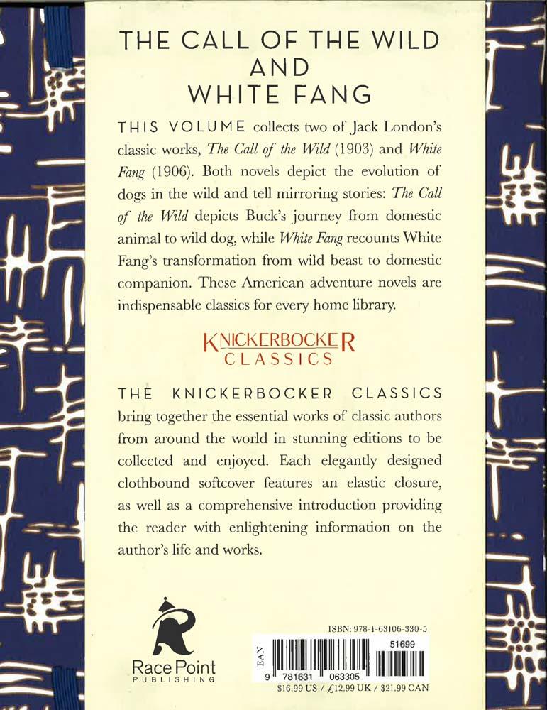 The Call of the Wild and White Fang two American classics by Jack London, now together in The Call of the Wild and White Fang. The Call of the Wild (1903) and White Fang (1906) are two classic American adventure novels depicting the evolution of two dogs in the wild. The novels are in fact mirror images of one another, as Call of the Wild depicts Buck's journey from domestic to wild dog, while White Fang recounts White Fang's transformation from wild beast to domestic companion. Both convey powerful themes of redemption and survival that continue to affect readers even today. These beautifully written stories, not together in one highly produced volume, are a perfect addition to any young adult's library. Anyone with a taste for adventure, loves the outdoors or camping, or spends time day dreaming about living self-sufficiently will be enamored by these adventure stories. This elegantly designed clothbound edition features an elastic closure and a new introduction by Kenneth Brandt.