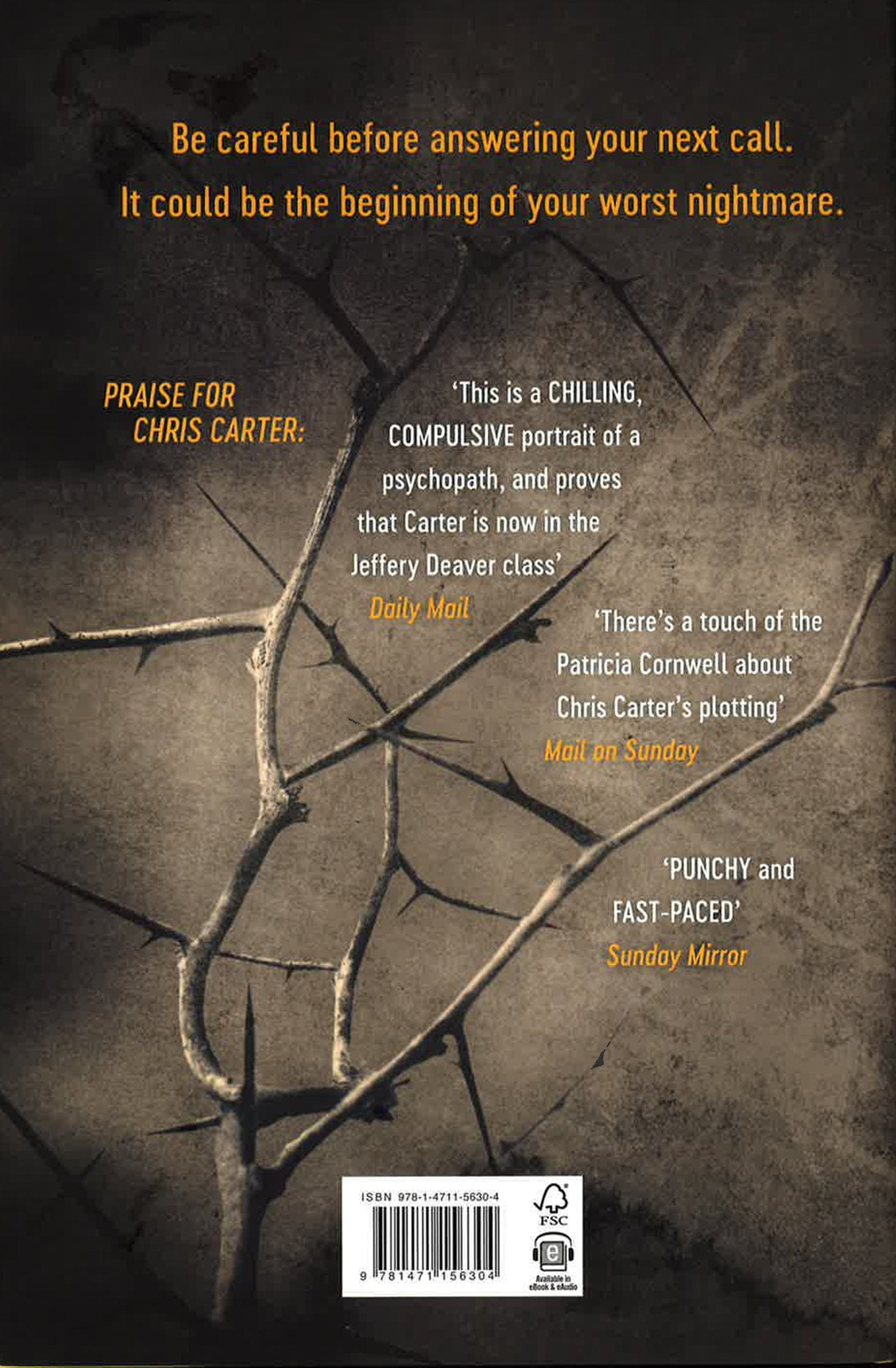 THE SUNDAY TIMES NUMBER ONE BESTSELLER After a tough week, Tanya Kaitlin is looking forward to a relaxing night in, but as she steps out of her shower, she hears her phone ring. The video call request comes from her best friend, Karen Ward. Tanya takes the call and the nightmare begins. Karen is gagged and bound to a chair in her own living room. If Tanya disconnects from the call, if she looks away from the camera, he will come after her next, the deep, raspy, demonic voice at the other end of the line promises her. As Detectives Robert Hunter and Carlos Garcia investigate the threats, they are thrown into a rollercoaster of evil, chasing a predator who scouts the streets and social media networks for victims, taunting them with secret messages and feeding on their fear. AS ADDICTIVE AS A TV BOXSET! What the reviewers are saying: 'Carter has a background in criminal psychology and the killers at the centre of his novels are all the more terrifying for it.' Mail on Sunday, chosen for 'If You Only Pack One' 'Carter is one of those authors who makes writing look effortless ... I couldn't put it down' Crime Squad 'An insanely good crime series. Extraordinarily well written, high quality and high drama all the way' Liz Loves Books 'An intriguing and scary thriller' Better Reading 'A gripping feast of thrills' Shots 'A gripping psychological thriller' Breakaway 'Very satisfying read' Falcata Times