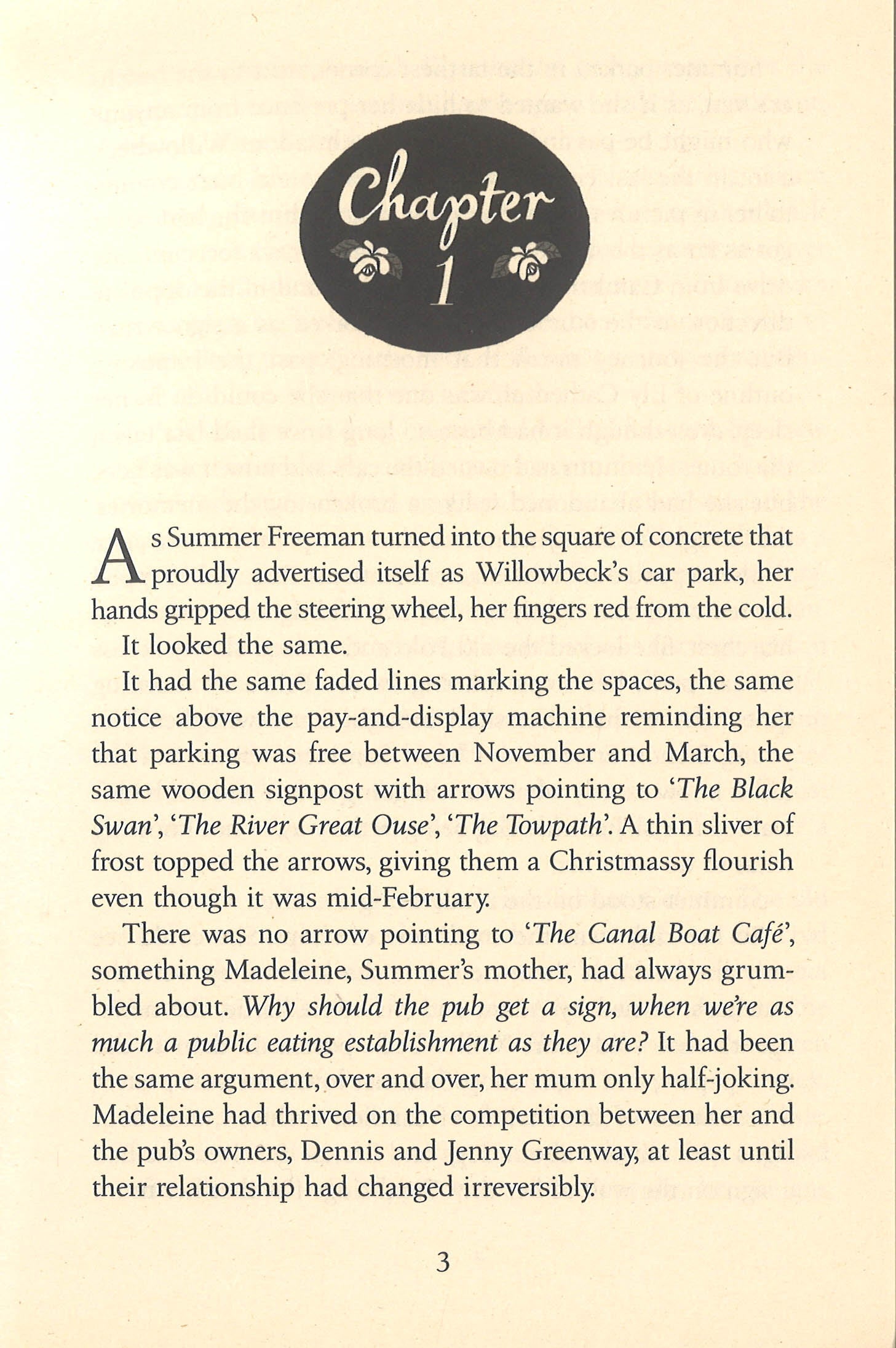 Summer Freeman returns to the waterside village of Willowbeck to rescue the Canal Boat Caf�, her late mother�s picturesque narrowboat, which has run into choppy waters. A family friend, Valerie, has been trying to keep things afloat, but the coffee machine is jammed, the cake offerings are paltry, and not all of the locals want to see the caf� succeed. Help comes from the boat next door, in the shape of handsome wildlife photographer, Mason and his naughty Border Terrier, who are showing more than a passing interest in Summer and her adorable Bichon Frise, Latte. But is Mason being honest about himself? Or does he have something to hide? As her life and the community of Willowbeck begin to entwine, Summer finds herself setting sail on a new adventure. Will the anchor of a steady life on land be too strong, or can Summer learn to cut loose and embrace life afloat?