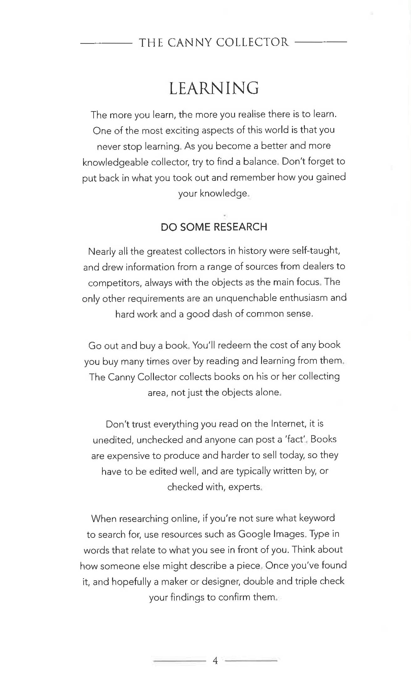 The Canny Collector is the perfect read for every collector. It covers a vast range of topics from what really drives the market today, to how to spot the 'next big thing' and how to display your collection. Crammed with practical and useful advice, the book is divided up into thoughtful and easy to read chunks, a little like some of today's social media. You'll find opinions, hints and tricks of the trade drawn from the author's personal experience, which can't be found elsewhere.