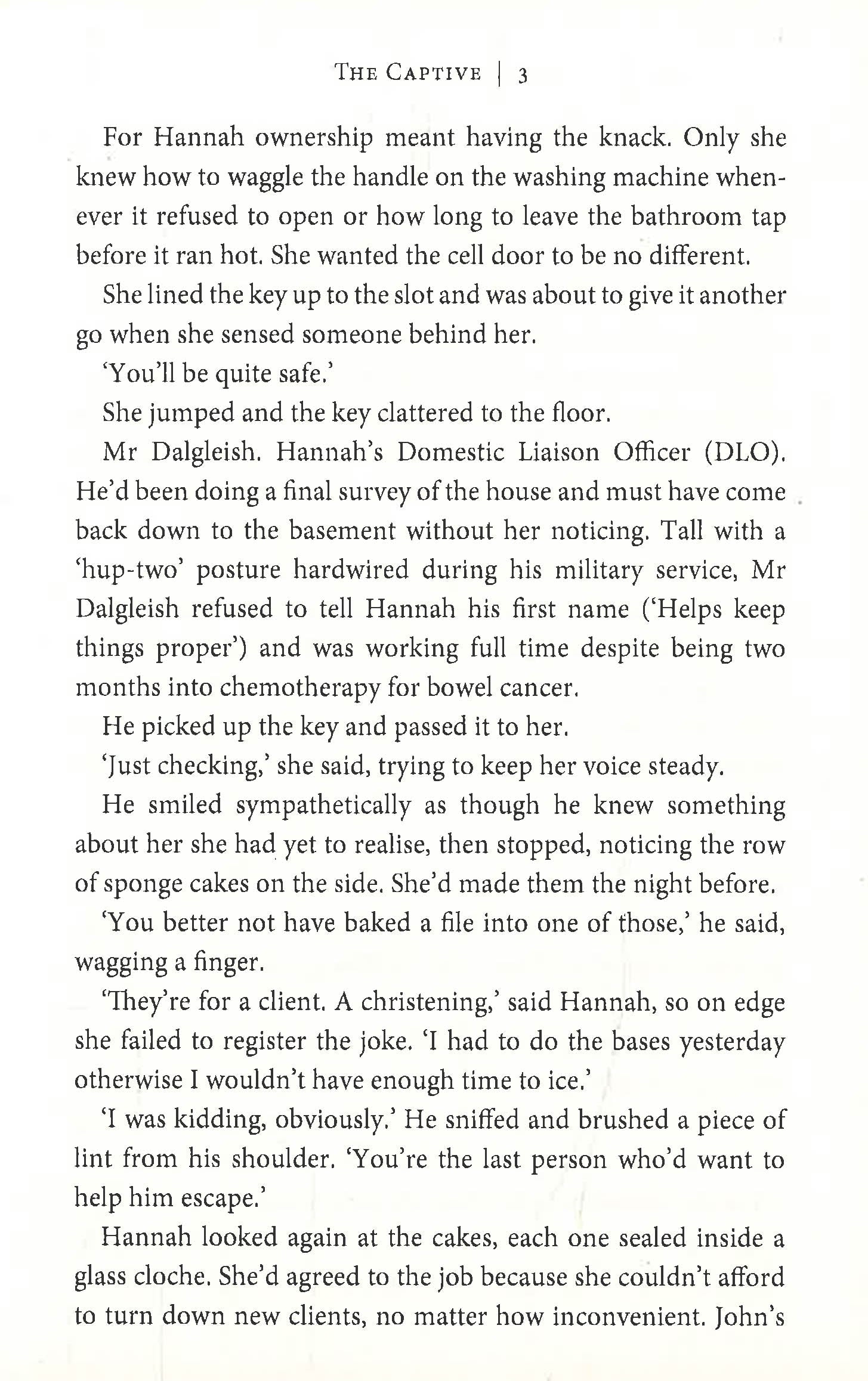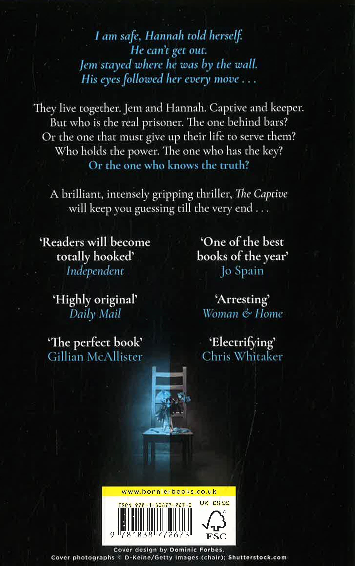 A gripping thriller perfect for fans of GIRL A, THE CAPTIVE will keep you guessing till the very end . . . 'Part thriller, part dark, unpredictable love story. A GRIPPING page-turner' ADELE PARKS, Platinum Magazine 'INGENIOUS. A smart, pacy and highly entertaining thriller' T.M. LOGAN ______________________ I am safe, Hannah told herself. He can't get out. Jem stayed where he was by the wall. His eyes followed her every move . . . They live together. Jem and Hannah. Captive and keeper. But who is the real prisoner. The one behind bars? Or the one that must give up their life to serve them? Who holds the power. The one who has the key? Or the one who knows the truth? A brilliant, intensively gripping thriller, The Captive will keep you guessing till the very end . . . ______________________ Everyone is talking about THE CAPTIVE... 'Oh my god, its fantastic! Highly original, thrilling and emotional' JO SPAIN 'The perfect concept. The perfect execution. The perfect book' GILLIAN MCALLISTER 'This original concept thriller is SO GOOD' HEAT 'Readers will become totally hooked. Hugely original and entertaining' INDEPENDENT 'Highly original' DAILY MAIL 'Stunning. Staggeringly original, chilling, electrifying' CHRIS WHITAKER, author of We Begin at the End 'A great concept. Impressive, compelling storytelling as well as a FANTASTIC mystery' GYTHA LODGE 'Original, deft, and clever, The Captive certainly had me in its vice-like grip throughout' PHOEBE MORGAN