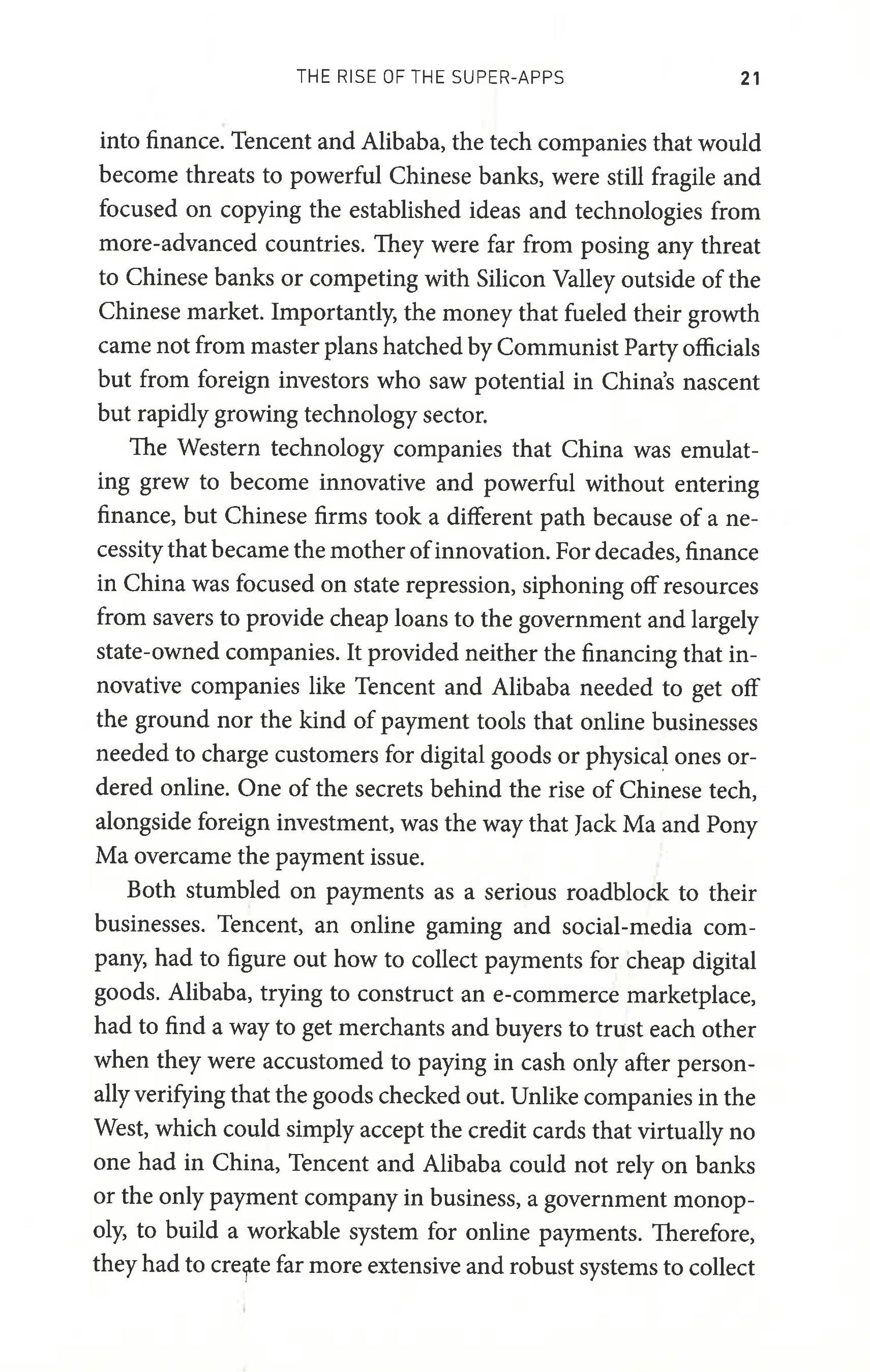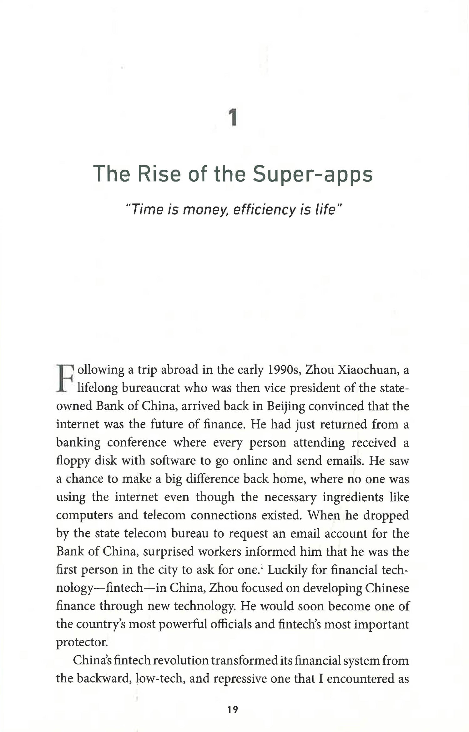 The startling picture of how China’s revolution in finance and technology is changing both Wall Street and the way individuals manage their personal finances.The future of finance – the way Wall Street operates and how individuals manage their money - is on the verge of upheaval. And the force underlying the change comes from China, where finance and technology are being merged into a system with consequences that resonate far beyond China’s border. The changes of this global revolution in finance and technology - fintech - will be as powerful as those wrought in social media, retailing and advertising by giants such as Amazon, Facebook, Google, and Twitter, which have overturned how we shop and communicate.China reinvented money with lightning speed, transforming a backward, antiquated cash-based finance system into one centered on super-apps created by technology giants Alibaba and Tencent. More powerful than anything available outside of China, they allow their billion users to pay, borrow, invest, buy goods and services, travel, chat (and far more) all fused together in one mobile phone application. Think Facebook, Google, Twitter, Goldman Sachs, Amazon, J.P. Morgan Chase all rolled into one app.We in the West need to understand China’s cashless revolution for reasons ranging from the macroeconomic to issues of personal liberty: The cutting edge of finance is now in China, forcing major financial firms in the United States and the West to figure out how not to be left behind.. China’s cashless revolution is also a harbinger of our future if we let the genie out of the bottle and allow big tech to become big finance. As money goes digital and central banks around the world consider launching digital currencies, we may have both immense convenience and a frightening concentration of power that could violate our privacy, stifle competition, increase financial risk, and give big firms or the government more control over our financial lives. And, once this genie is out of the bottle, the struggle to put it back in may be impossible.
