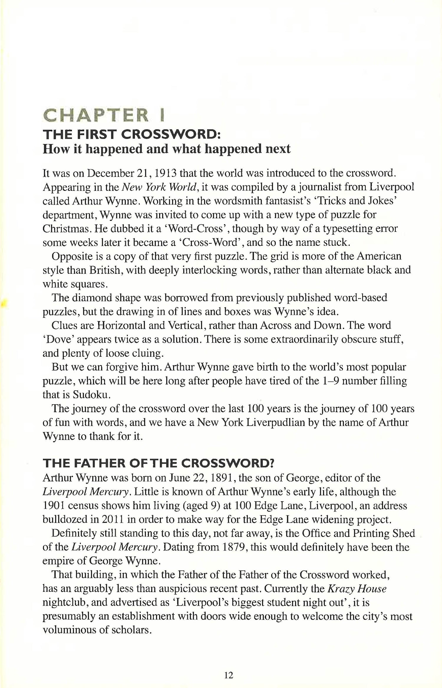 The crossword has been the most consistently successful puzzle of modern times. Forget riddles, conundrums or that modern usurper Sudoku, the crossword is the original and best word puzzle and it has truly stood the test of time. Crosswords are everywhere - every newspaper features them - there are many incarnations and all sorts of difficulty levels. This book celebrates the world's favourite word puzzle by recounting the history of it, alongside examples of puzzles and words of wisdom from puzzle setters, crossword editors and members of the public who have racked their brains to find the solution to that elusive clue.