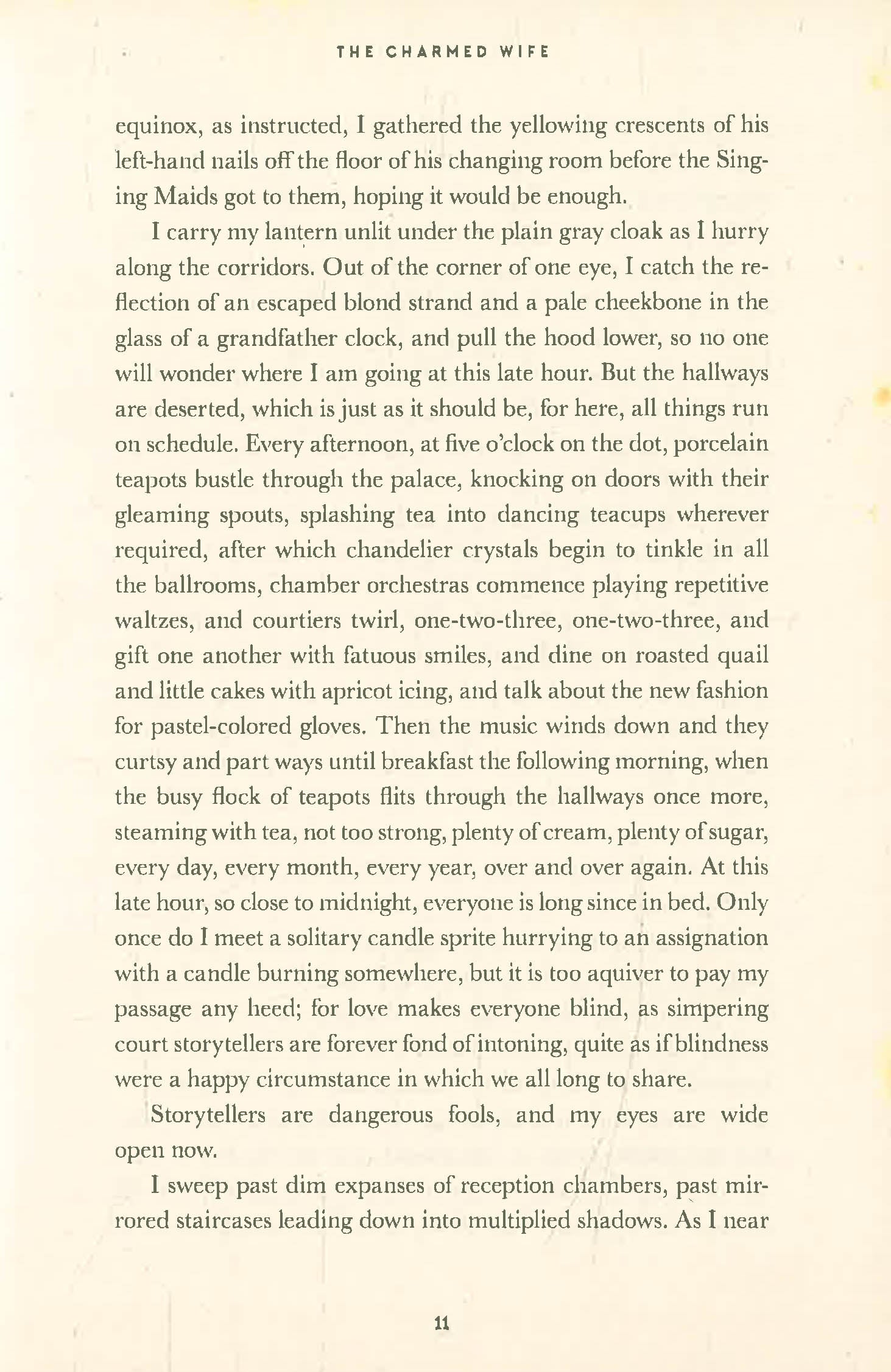 Endlessly surprising and wildly inventive, The Charmed Wife is a sophisticated literary fairy tale for the twenty-first century that weaves together time and place, fantasy and reality, to conjure a world unlike any other. Nothing in it is quite what it seems, and the twists and turns of its magical, dark, swiftly shifting paths take us deep into the heart of romance, marriage and the very nature of storytelling.