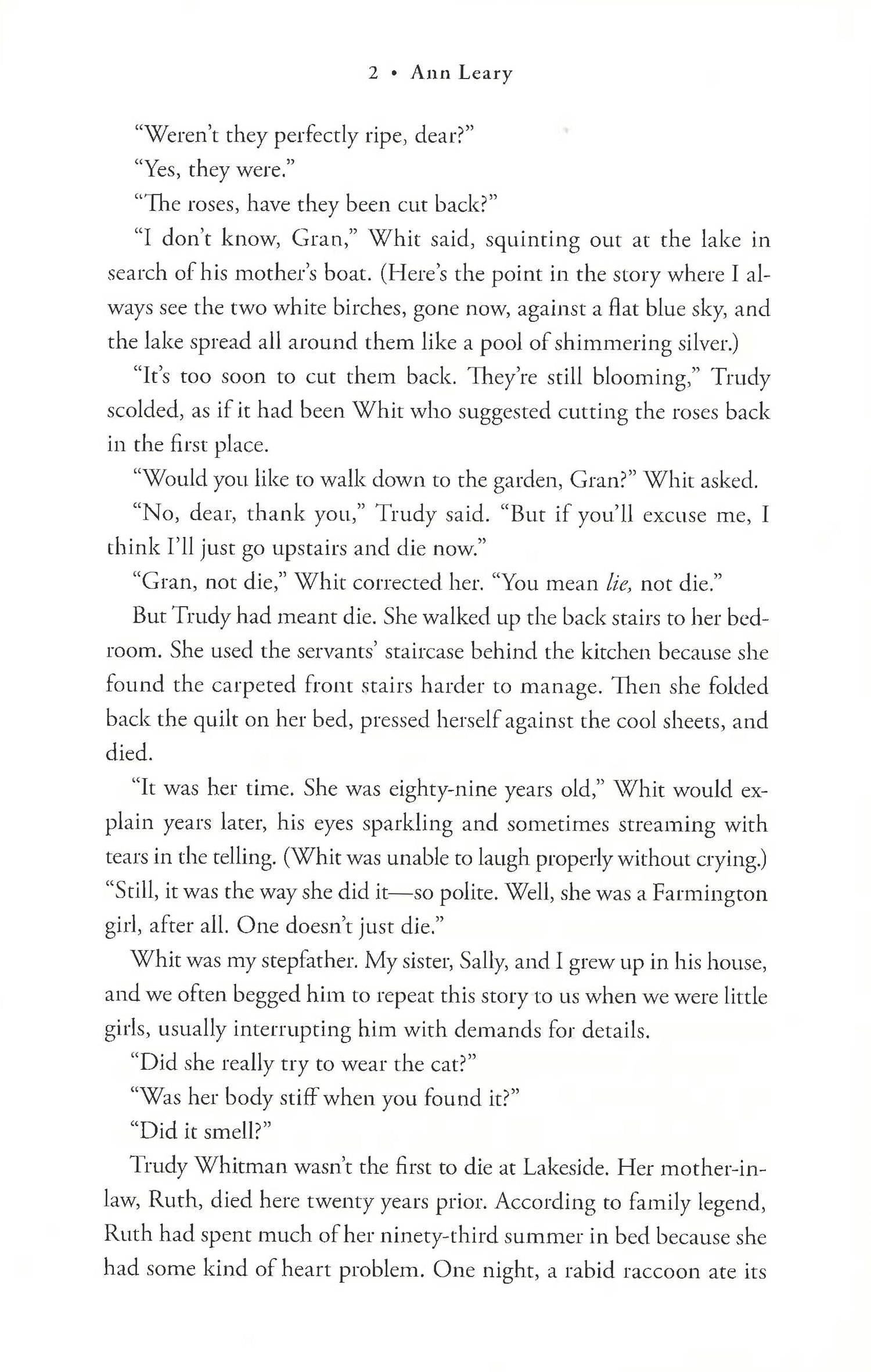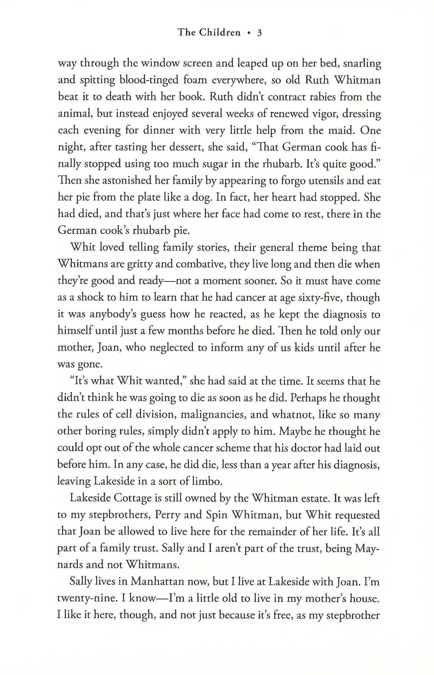 From New York Times bestselling author Ann Leary comes the captivating story of a wealthy, but unconventional New England family, told from the perspective of a reclusive 29-year-old who has a secret (and famous) life on the Internet. Charlotte Maynard rarely leaves her mother's home, the sprawling Connecticut lake house that belonged to her late stepfather, Whit Whitman, and the generations of Whitmans before him. While Charlotte and her sister, Sally, grew up at "Lakeside," their stepbrothers, Spin and Perry, were welcomed as weekend guests. Now the grown boys own the estate, which Joan occupies by their grace--and a provision in the family trust. When Spin, the youngest and favorite of all the children, brings his fiance home for the summer, the entire family is intrigued. The beautiful and accomplished Laurel Atwood breathes new life into this often comically rarefied world. But as the wedding draws near, and flaws surface in the family's polite veneer, an array of simmering resentments and unfortunate truths is exposed. With remarkable wit and insight, Ann Leary pulls back the curtain on one blended family, as they are forced to grapple with the assets and liabilities - both material and psychological - left behind by their wonderfully flawed patriarch.