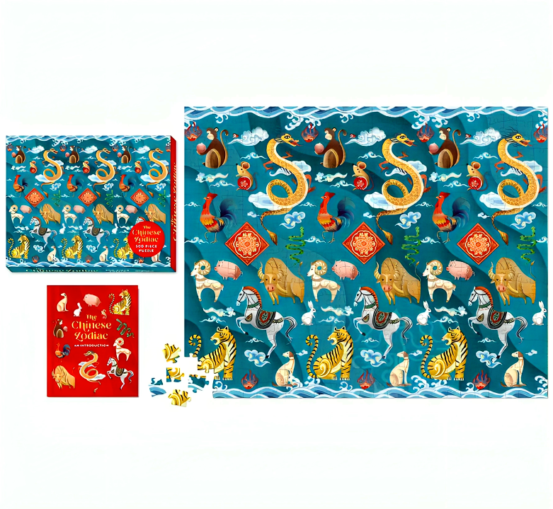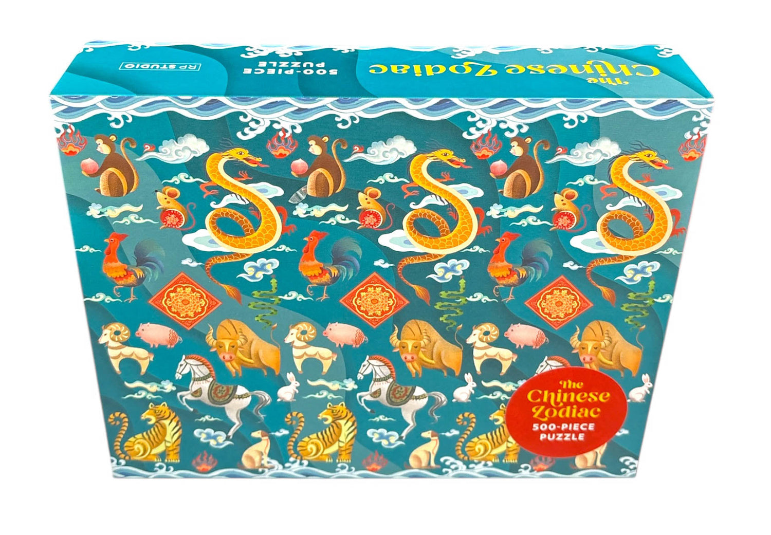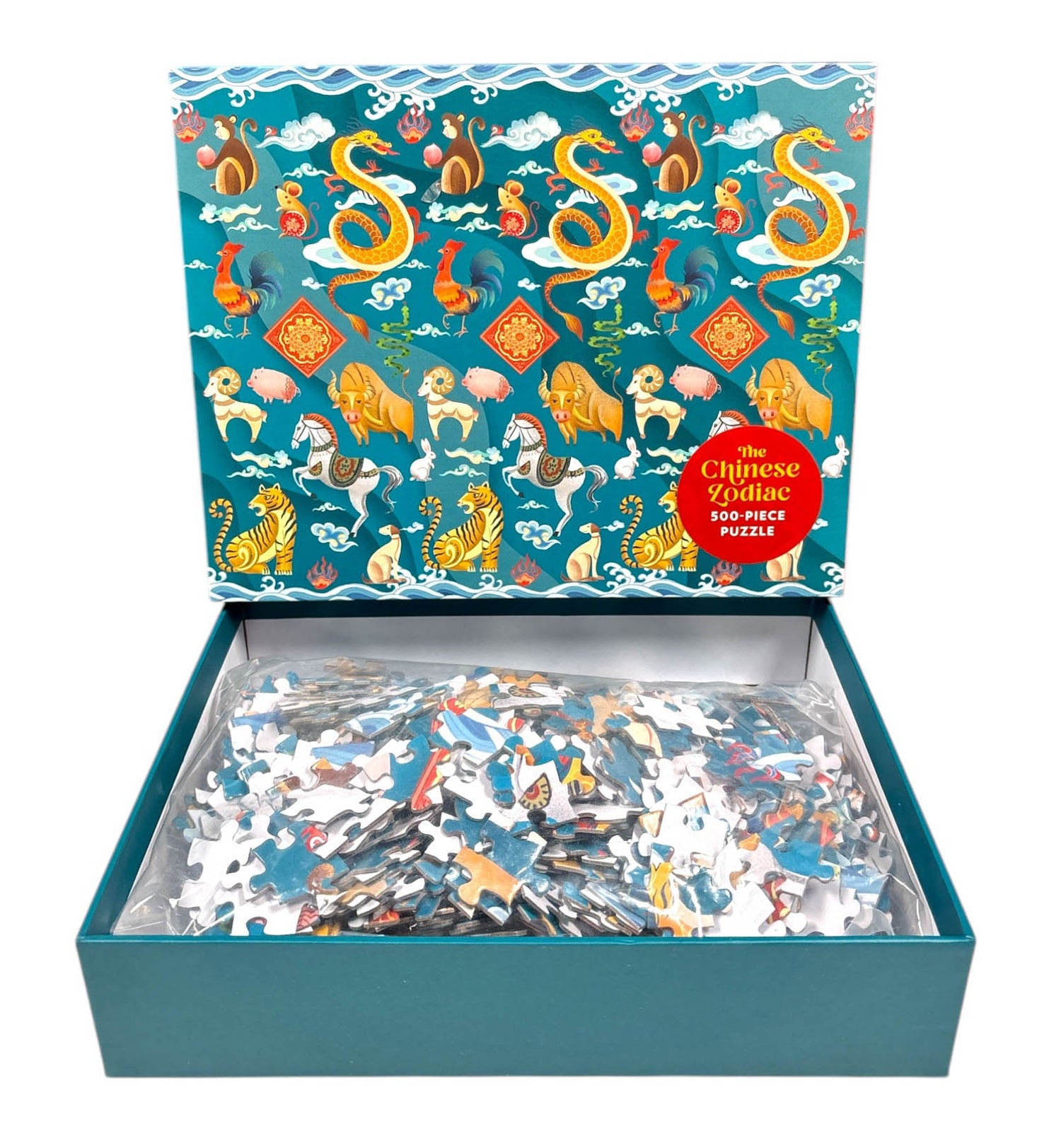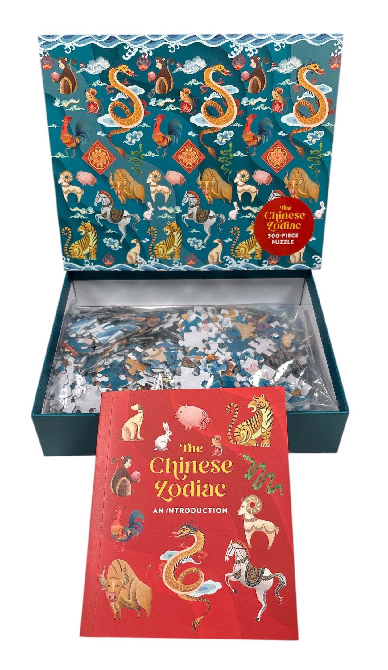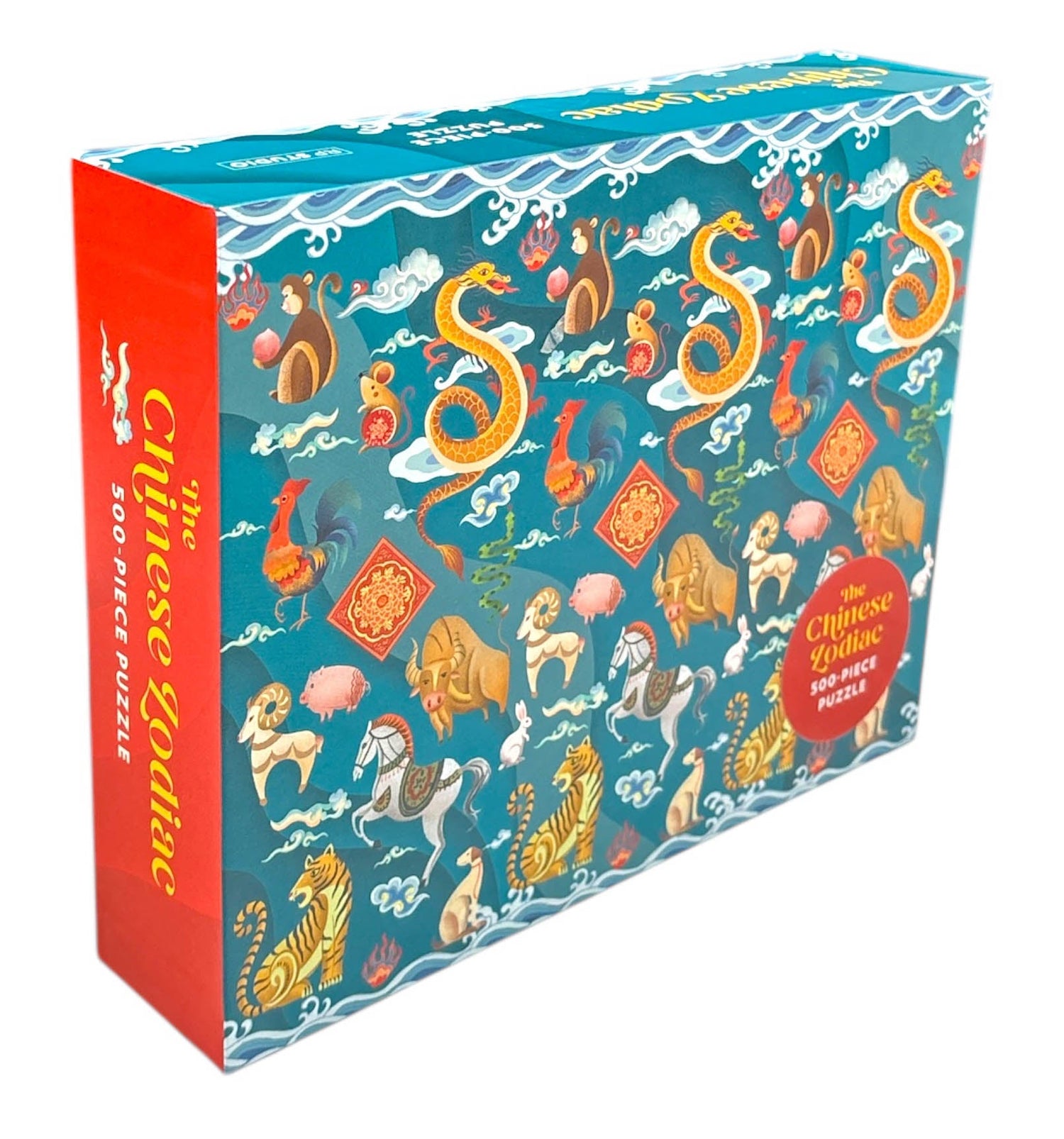 Explore the Chinese zodiac with this fully illustrated 500-piece puzzle and book set, featuring beautiful illustrations of the 12 animal horoscopes.