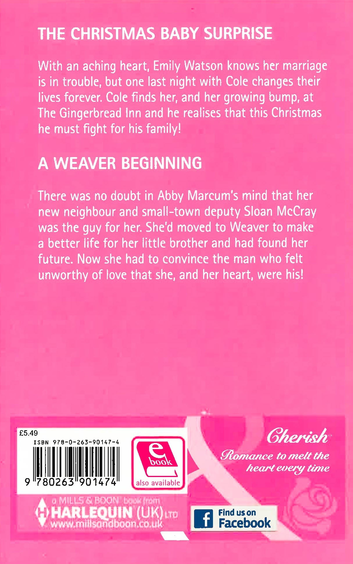 The Christmas Baby Surprise With an aching heart, Emily Watson knows her marriage is in trouble, but one last night with Cole changes their lives forever. Cole finds her, and her growing bump, at The Gingerbread Inn and he realises that this Christmas he must fight for his family! A Weaver Beginning There was no doubt in Abby Marcum's mind that her new neighbour and small-town deputy Sloan McCray was the guy for her. She'd moved to Weaver to make a better life for her little brother and had found her future. Now she had to convince the man who felt unworthy of love that she, and her heart, were his!