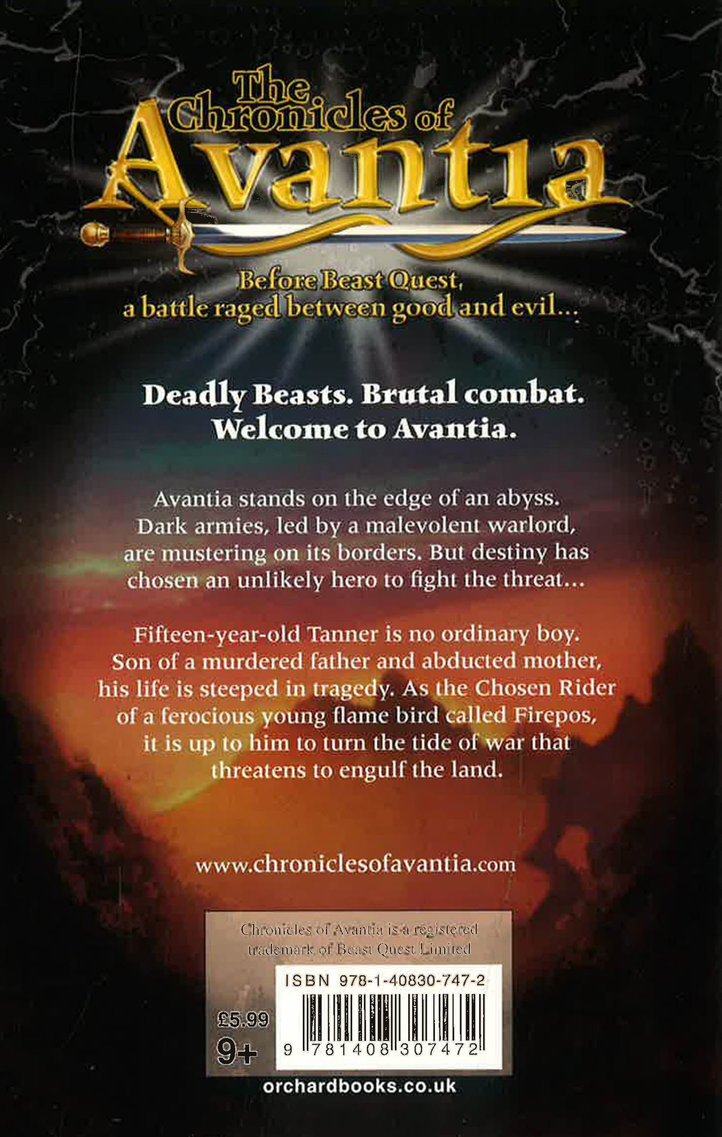 Tanner, a young boy living in the land of Avantia, has been chosen by a magnificent Beast - the young phoenix Firepos - to be her rider. It is their destiny to seek three other Beasts, and their Chosen Riders - for they have an epic task to undertake. Together they must do battle with the cruel warlord Derthsin and his terrible armies of destruction...