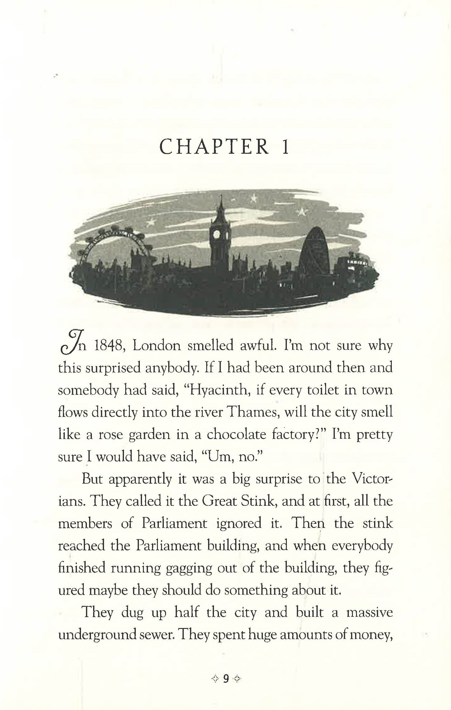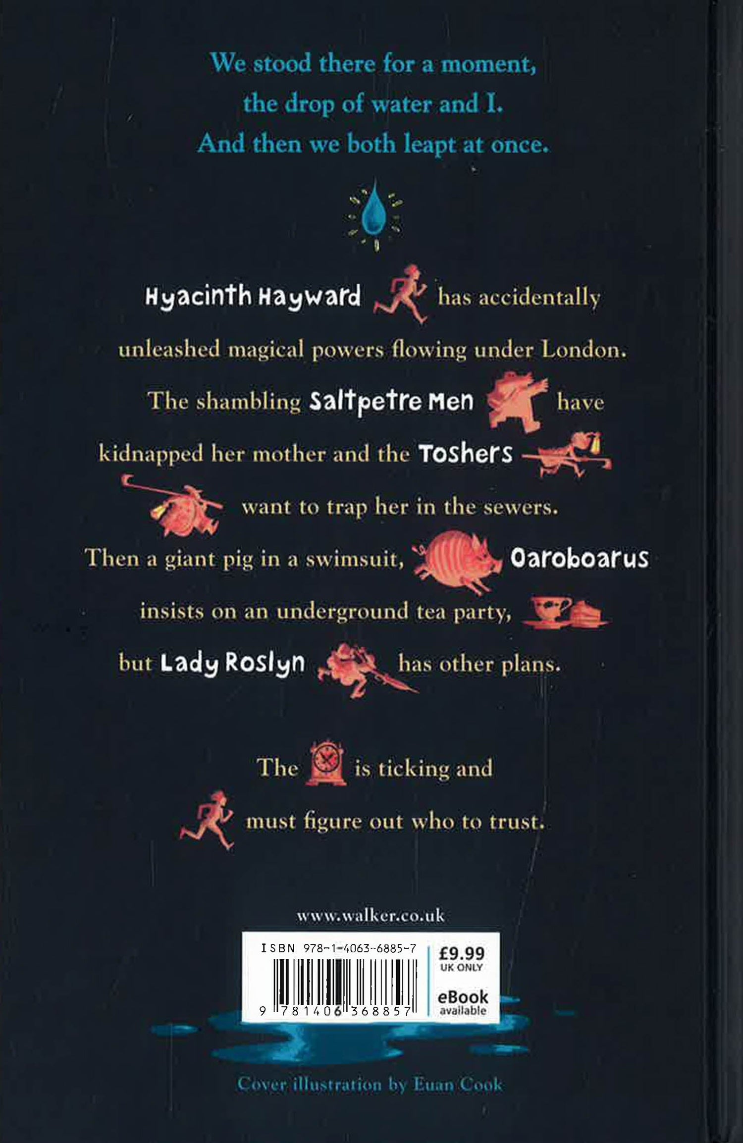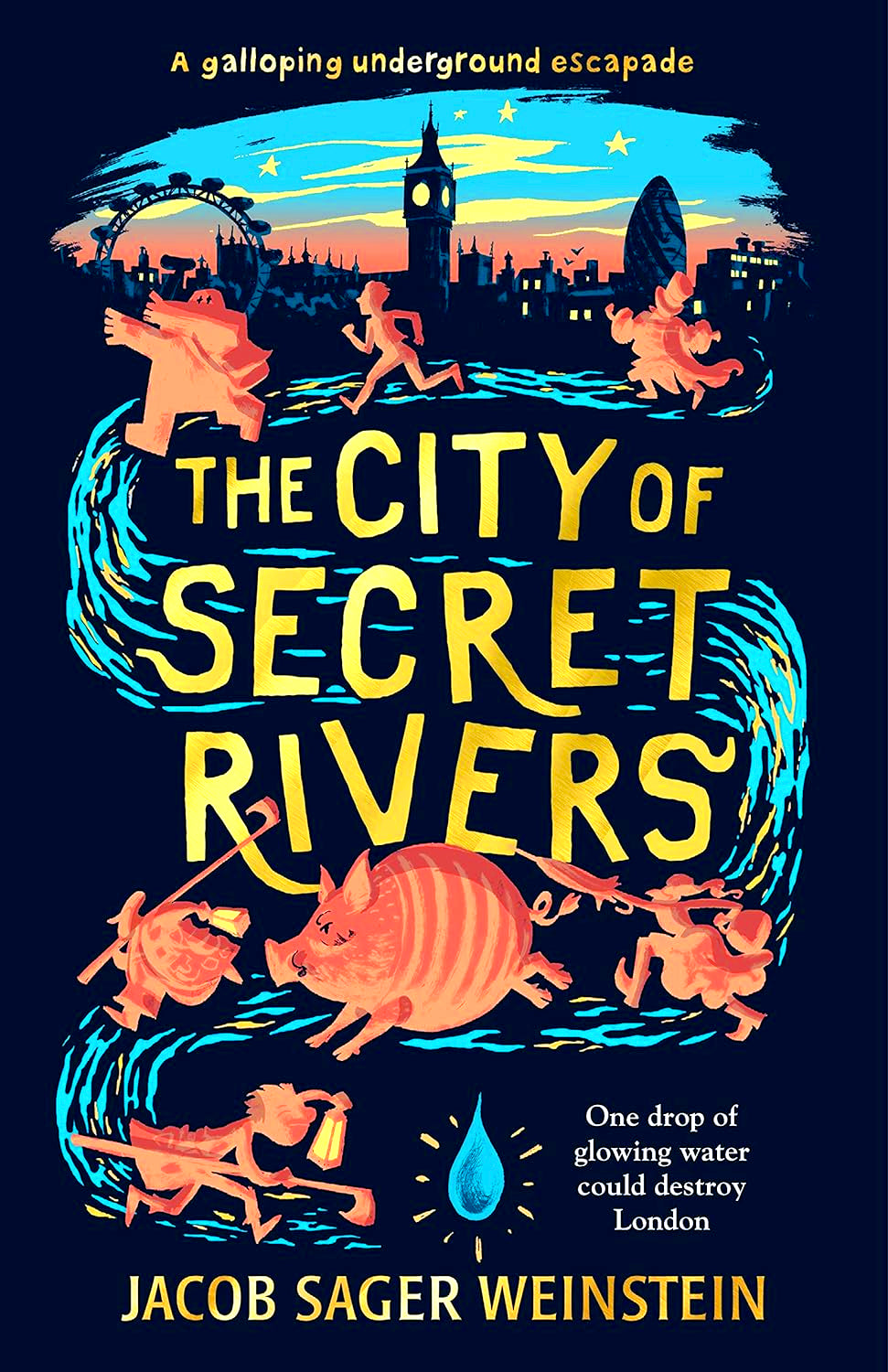 A hilarious fantasy adventure set in modern day London.An exciting subterranean London adventure, the first in a middle-grade trilogy. Hyacinth Hayward has recently arrived from America and is having difficulty adjusting to her new surroundings, especially being in the sole company of her eccentric mother. Everything feels strange. Very strange. And it gets stranger the day she accidentally unleashes the power of a secret river running through London. To prevent a second Great Fire, Hyacinth needs to retrieve a single, magically charged drop of water from somewhere in the city sewer system. Along the way she encounters an eclectic cast of characters - the shambling, monstrous Saltpetre Men who kidnap her mother, the Toshers who battle for control of magical artefacts and a giant pig with whom she has a tea party. The clock is ticking - will she figure out who to trust?