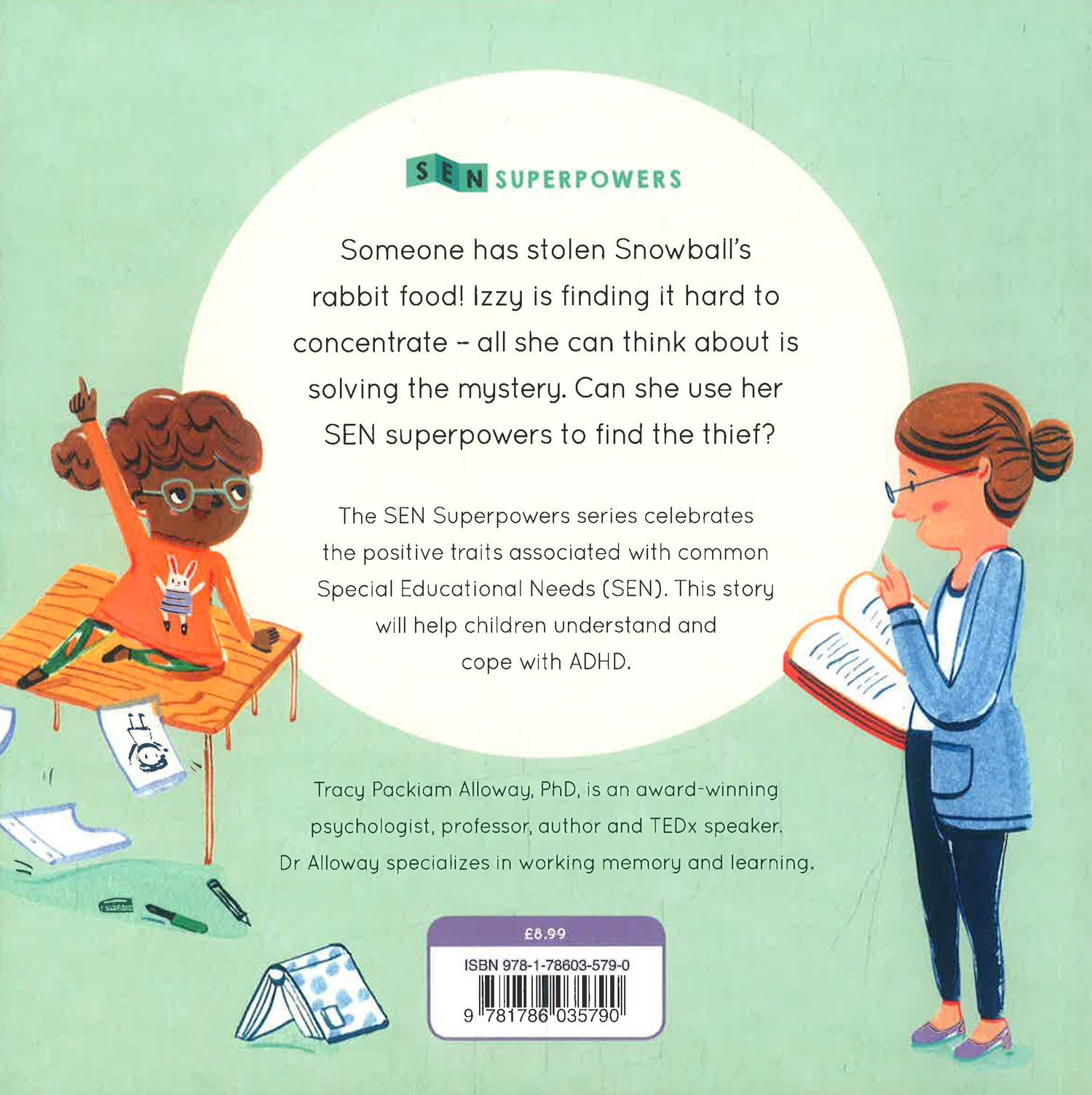 Someone has been stealing food from Snowball, the classroom pet bunny! Izzy finds it hard to sit still and concentrate in class, but could she be the one to track down the culprit using her fantastic verbal working memory?