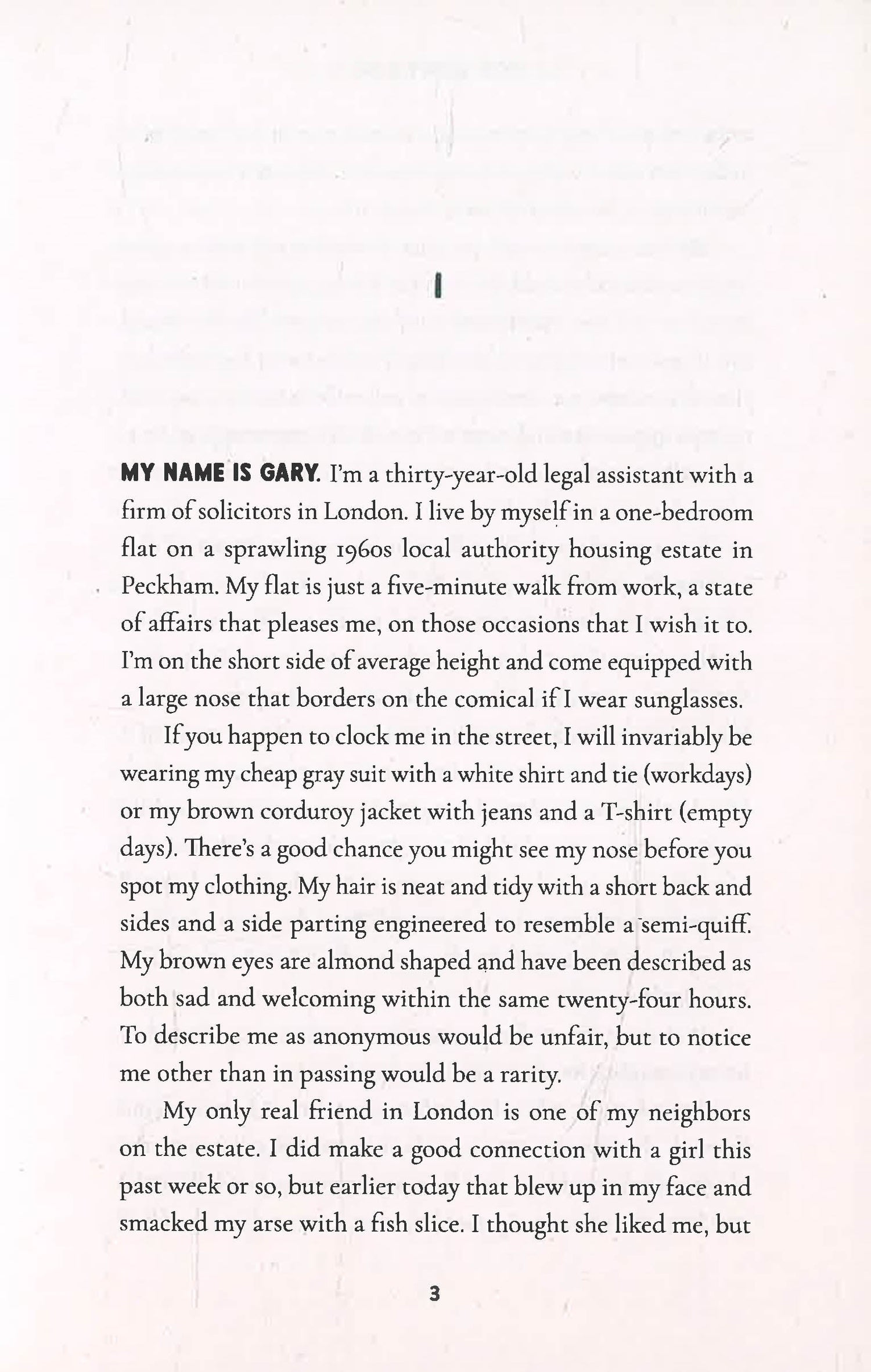 And so begins Gary's quest, through the estates and pie shops of South London, to find some answers and hopefully, some love and excitement in this page-turning, witty, and oddly sweet story with a cast of unforgettable characters.