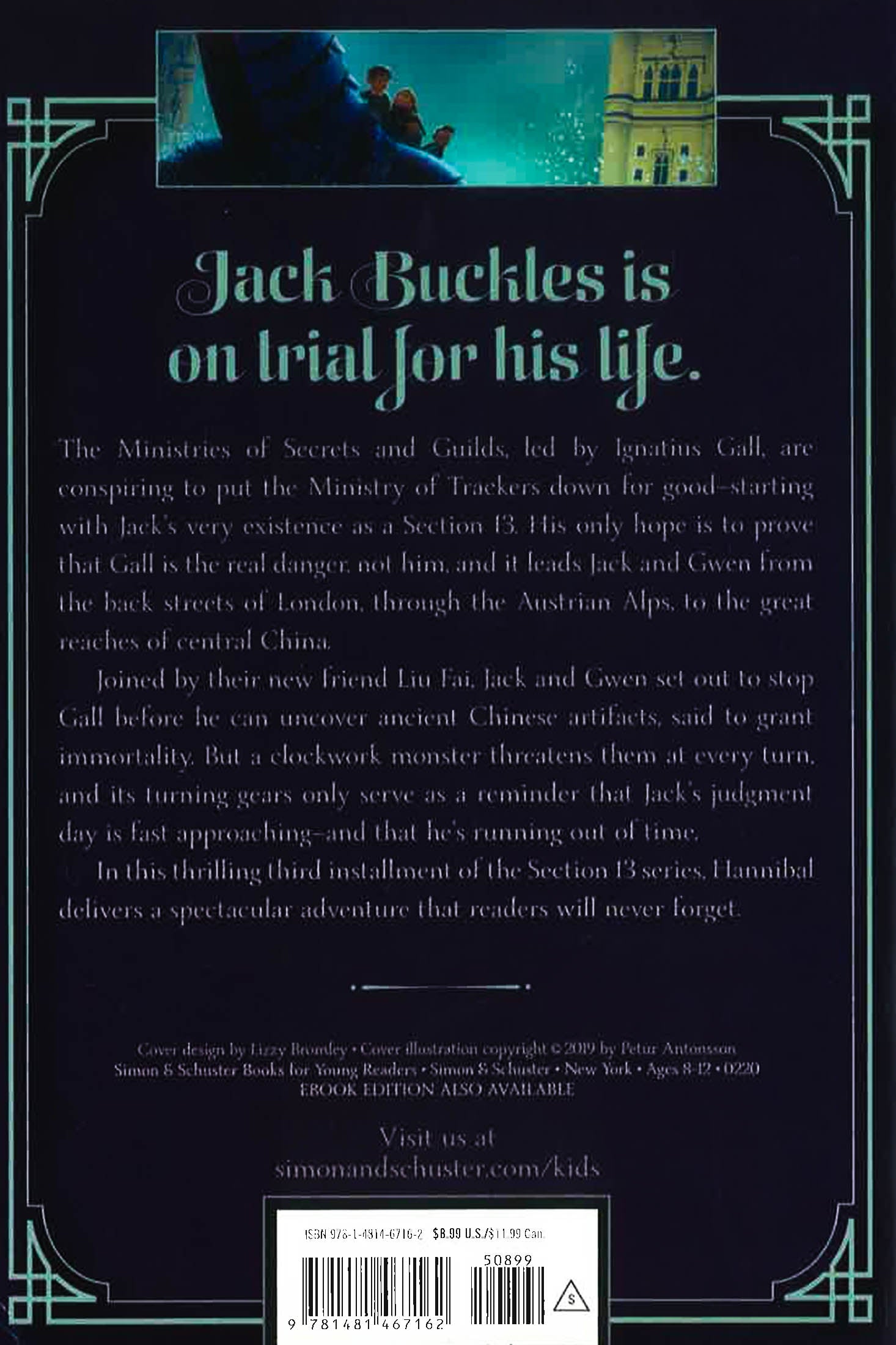 Jack discovers new abilities, travels to exciting lands, and thwarts a conspiracy brewing deep within the ministries in this epic addition to the action-packed Section 13 series.Jack Buckles is on trial for his life. The Ministries of Secrets and Guilds, led by Ignatius Gall, are conspiring to put the Ministry of Trackers down for good-starting with Jack's very existence as a Section 13. His only hope is to prove that Gall is the real danger, not him, and it leads Jack and Gwen from the back streets of London, through the Austrian Alps, to the great reaches of central China. Joined by their new friend Liu Fai, Jack and Gwen set out to stop Gall before he can uncover ancient Chinese artifacts, said to grant immortality. But a clockwork monster threatens them at every turn, and its ticking gears only serve as a reminder that Jack's judgment day is fast approaching-and that he's running out of time.