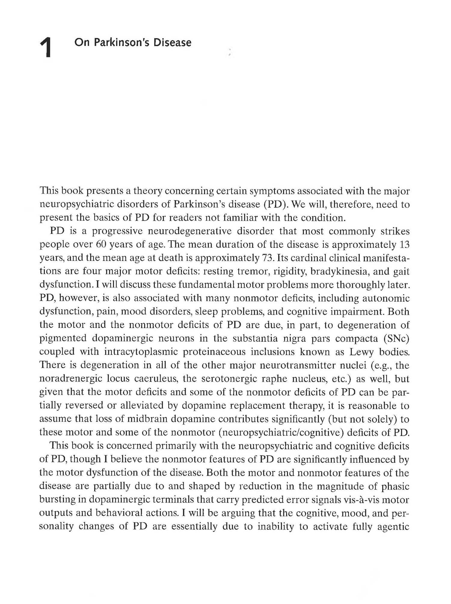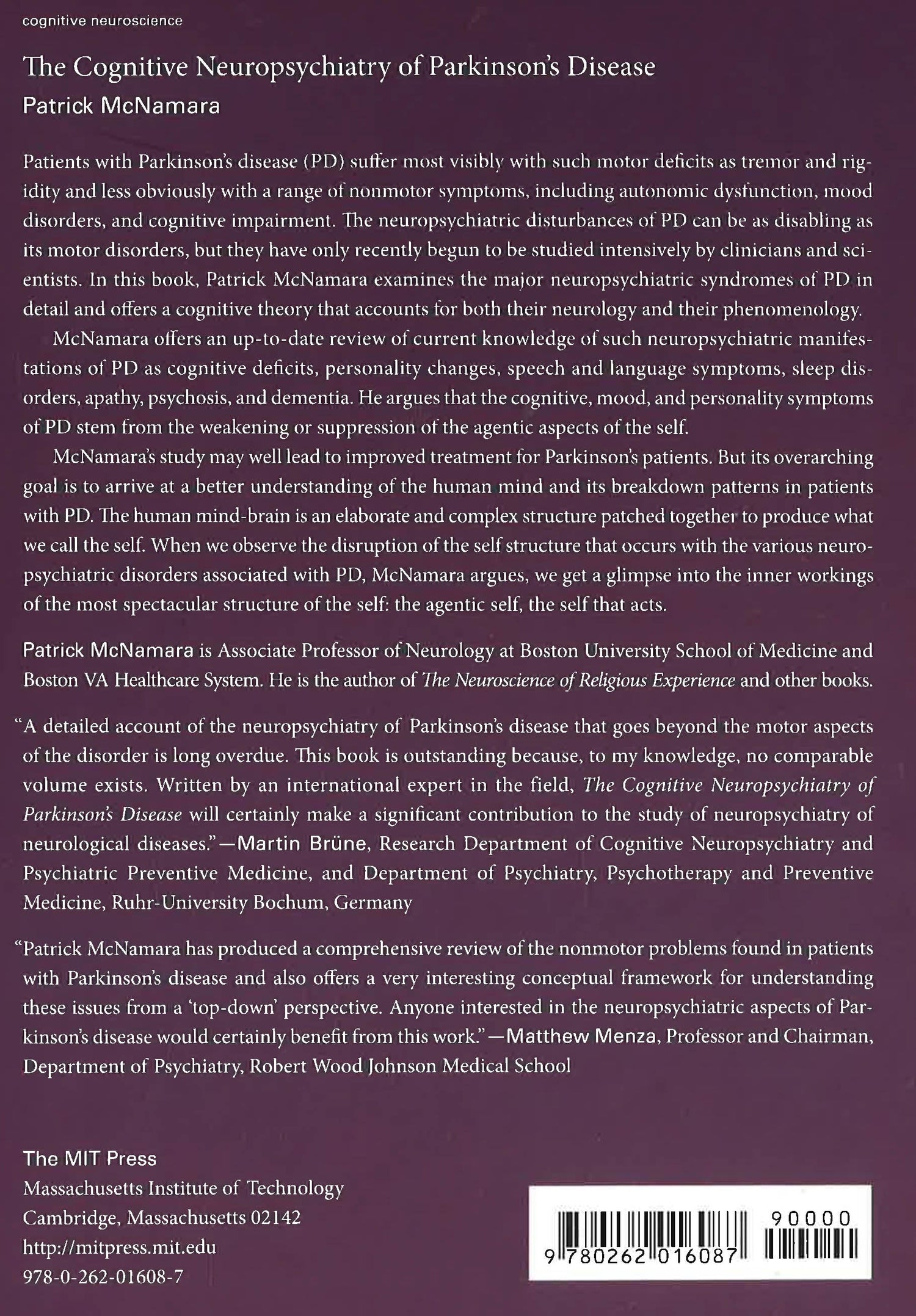 Patients with Parkinson's disease (PD) suffer most visibly with such motor deficits as tremor and rigidity and less obviously with a range of nonmotor symptoms, including autonomic dysfunction, mood disorders, and cognitive impairment. The neuropsychiatric disturbances of PD can be as disabling as its motor disorders; but they have only recently begun to be studied intensively by clinicians and scientists. In this book, Patrick McNamara examines the major neuropsychiatric syndromes of PD in detail and offers a cognitive theory that accounts for both their neurology and their phenomenology.