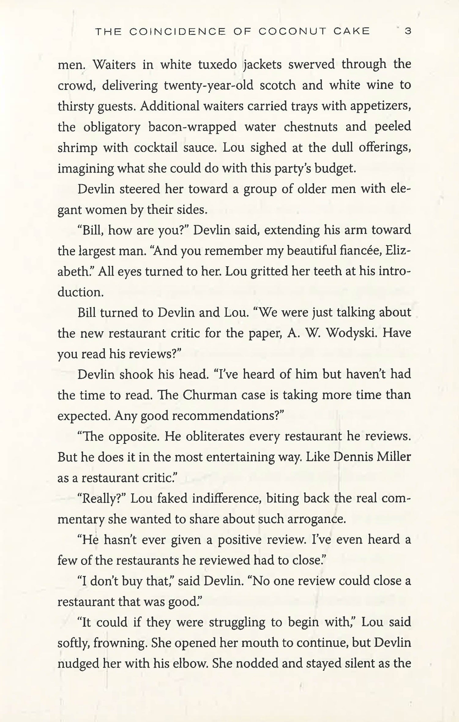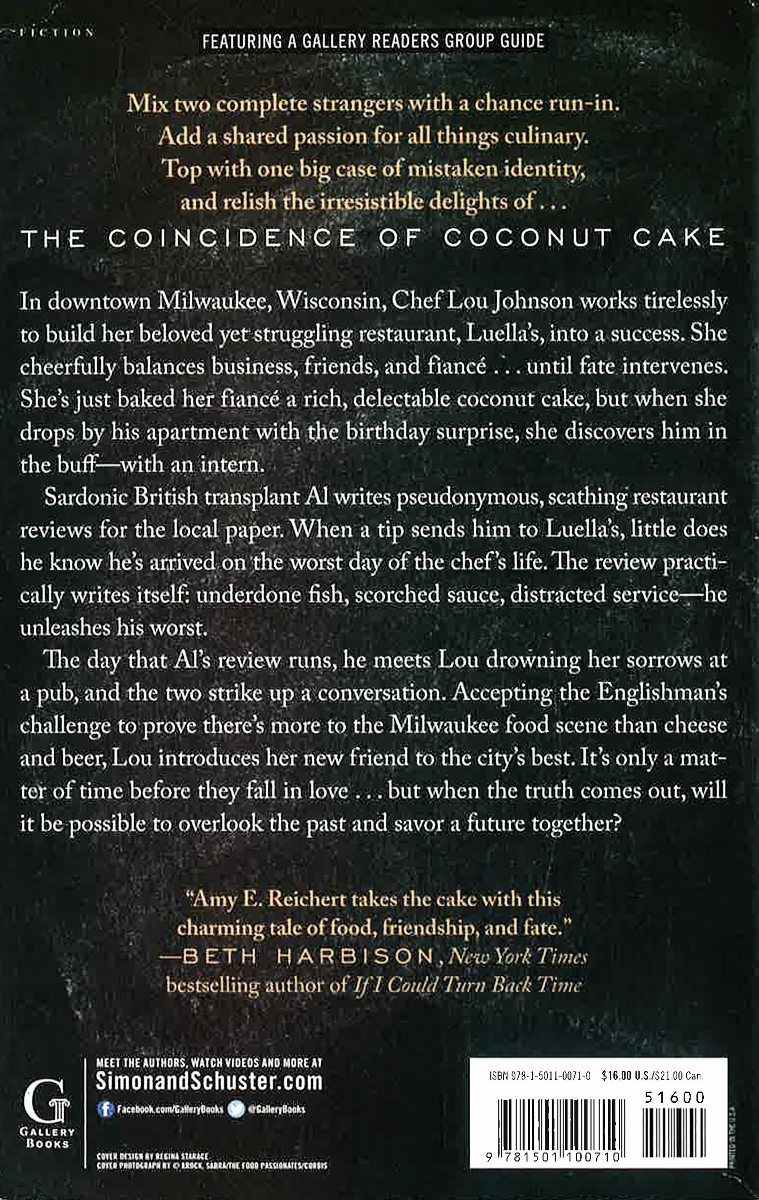 Set in the lovely, quirky heart of Wisconsin, The Coincidence of Coconut Cake is a charming love story of misunderstandings, mistaken identity, and the power of food to bring two people together.