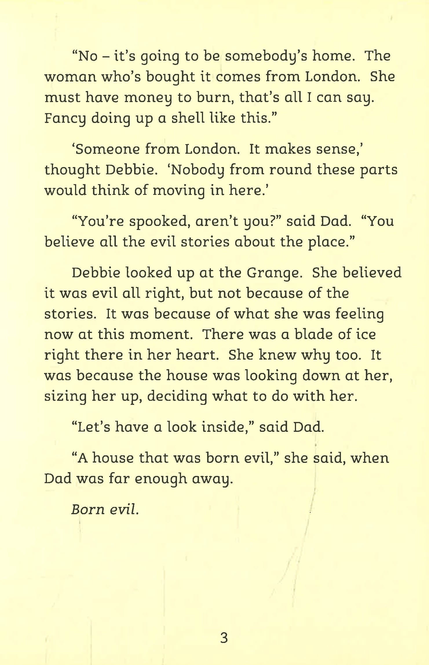 When Debbie's father starts renovating a house, Debbie is terrified by sightings of a girl killed there 50 years ago. This is a chilling ghost story. Barrington Stoke specialise in books for reluctant, struggling and dyslexic readers.