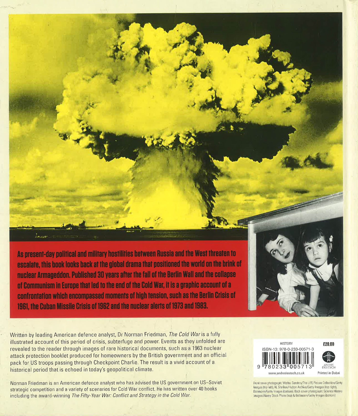 As present-day political and military hostilities between Russia and the West threaten to escalate, The Cold War looks back at a global drama that positioned the world on the brink of nuclear Armageddon. Published 30 years after the fall of the Berlin Wall and the collapse of Communism in Europe that led to the end of the Cold War, it is a graphic account of a confrontation that encompassed moments of high tension, such as the Berlin Crisis of 1961, the Cuban Missile Crisis of 1962 and the nuclear alerts of 1973 and 1983. Written by leading defence analyst, Dr Norman Friedman, The Cold War is a fully illustrated account of this period of crisis, subterfuge and power. Showing rare documents, such as a 1963 nuclear attack protection booklet produced for homeowners by the British government, and an official pack for US troops passing through Checkpoint Charlie, the reader can witness events as they unfolded. The result is a vivid account of a historical period that is echoed in today's geopolitical climate.