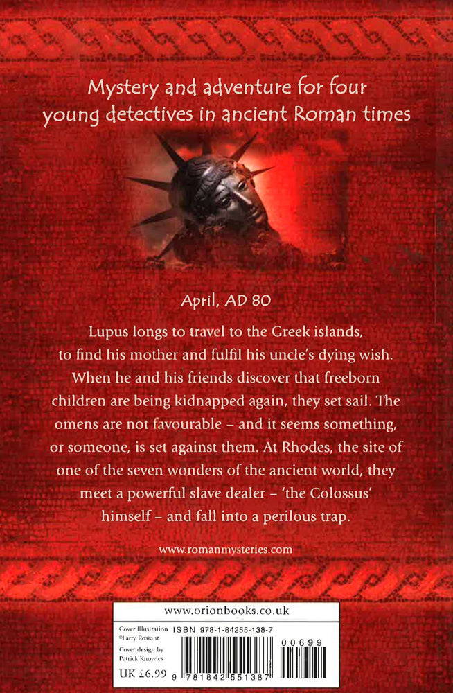 Spring AD 80. The sailing season has begun. Lupus decides to see if his mother is still alive and to follow his uncle's dying wish. The friends sail to the island of Rhodes, site of one of the seven wonders of the ancient world . . . and base of a criminal mastermind!