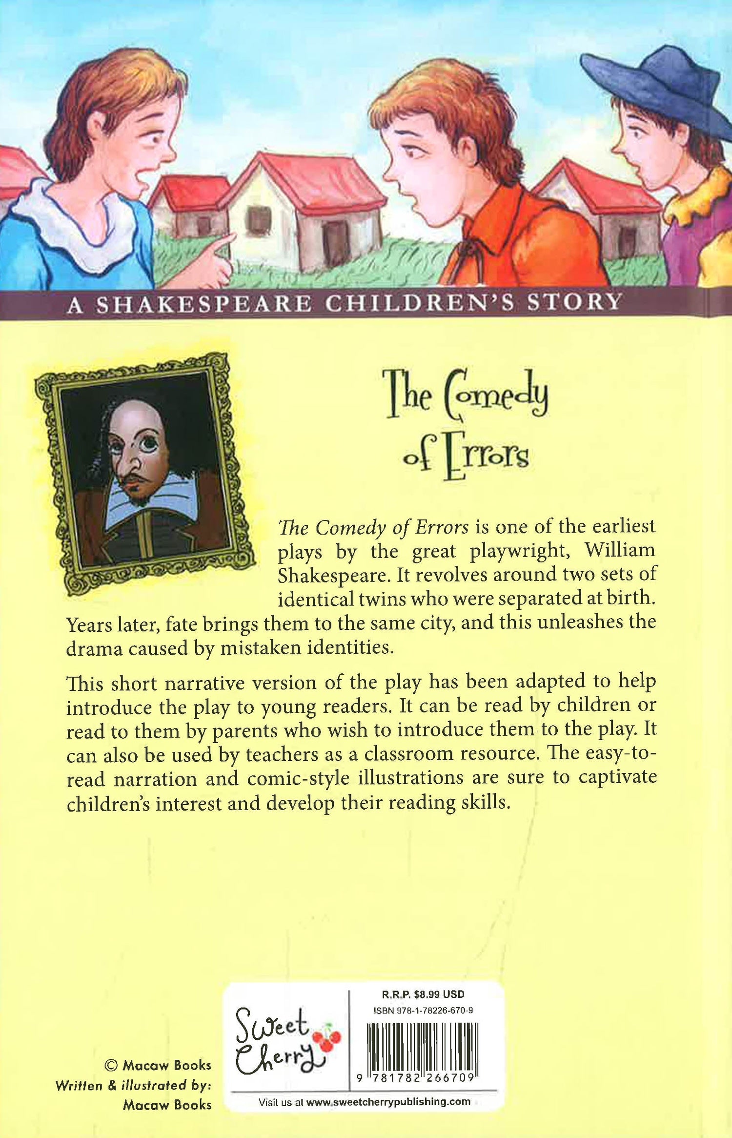 The Comedy of Errors is one of the earliest plays of the great playwright, William Shakespeare. It revolves around two sets of identical twins who were separated at birth. Years later, fate brings them to the same city, and this unleashes the drama caused by mistaken identities. This short narrative version of the play has been suitably adapted to help introduce the play to young readers. It can be read by children or read to them by parents who wish to introduce them to the play. It can also be used by teachers as a classroom resource. The easy-to-read narration and comic-style illustrations are sure to captivate children s interest and develop their reading skills.