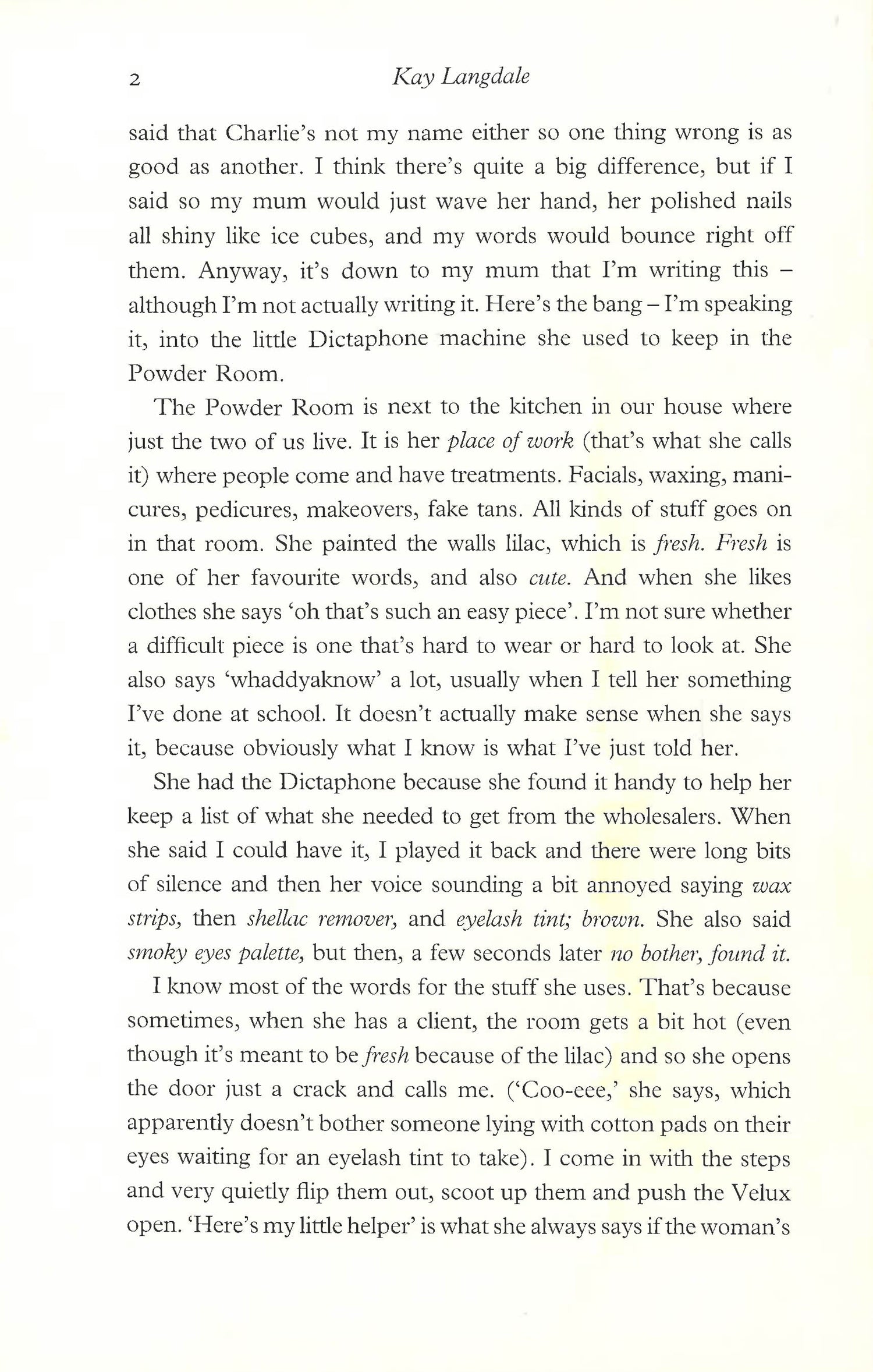 Reading it on the train I had to fight not to sob in public . . . Langdale is a wonderful writer' (Daily Mail on Away from You) Perfect for readers of Adele Parks and Maggie O'Farrell. Minnie and her sister Clara, spinsters both, live in a dilapidated country house in the middle of a housing estate, built when their father sold off the family's land. Now in their seventies, their days follow a well-established routine: long gone are the garden parties, the tennis lessons and their suffocatingly strict mother. Gone, too, is any mention of what happened when Minnie was sixteen, and the secret the family buried in the grounds of their estate. Directly opposite them lives Max, an 11-year-old whose life with his mum has changed beyond recognition since her new boyfriend arrived. Cast aside, he takes solace in Minnie's careful routine, observed through his bedroom window. Over the course of the summer, both begin to tell their stories: Max through a Dictaphone, Minnie through a diary. As their tales intertwine, ghosts are put to rest and challenges faced, in a story that is as dark as it is uplifting.