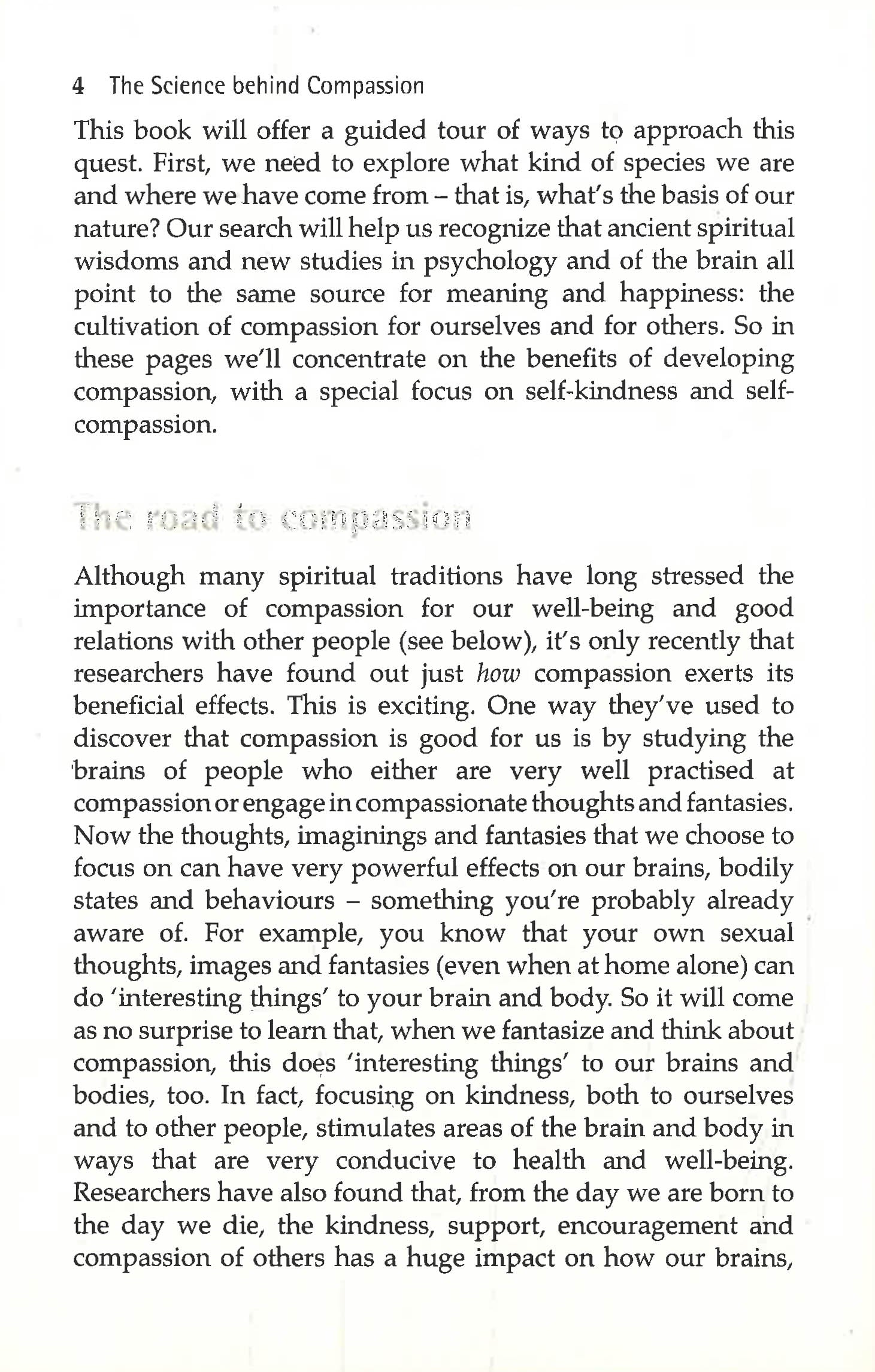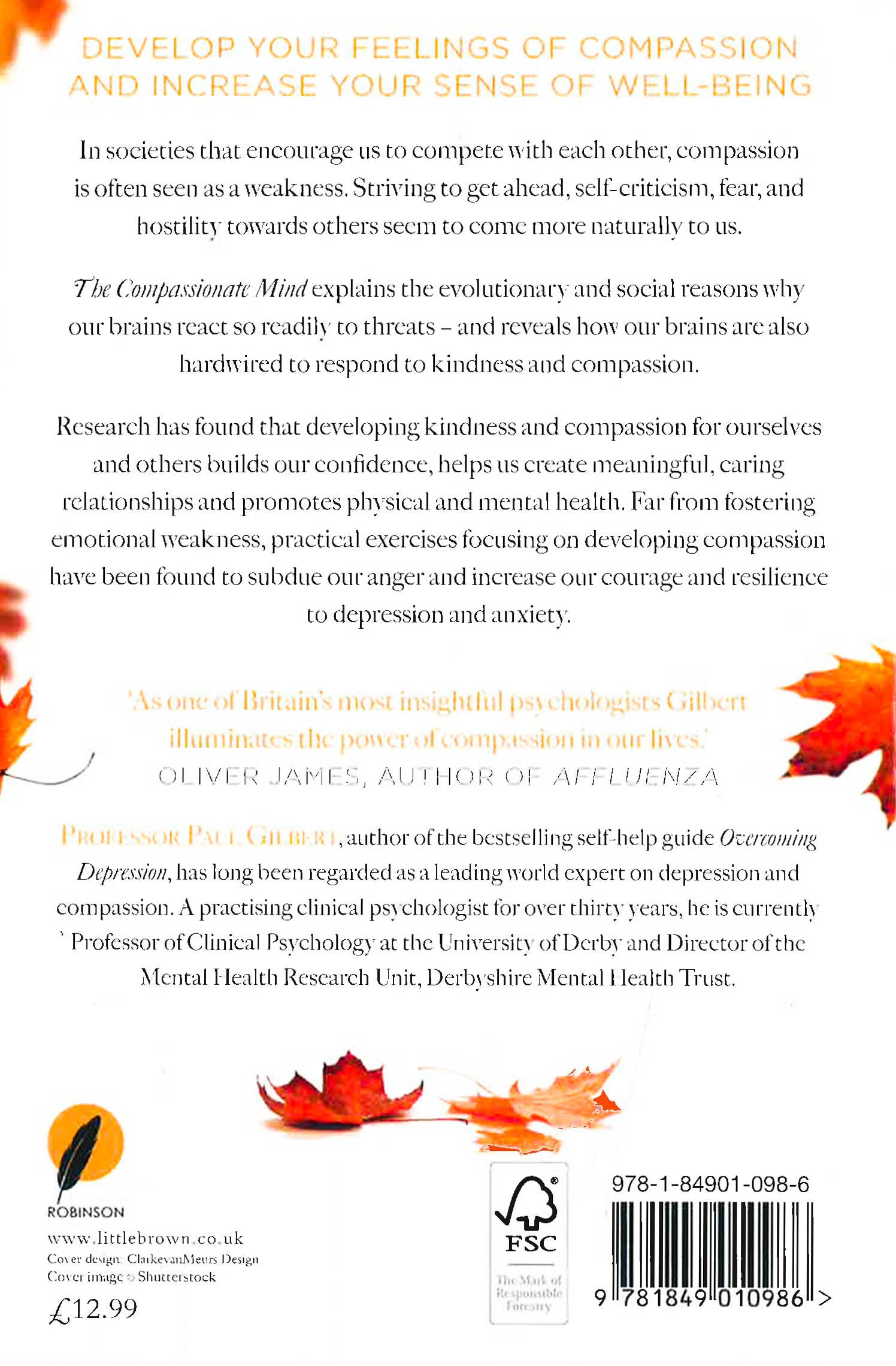 Throughout history people have sought to cope with a life that is often stressful and hard. We have actually known for some time that developing compassion for oneself and others can help us face up to and win through the hardship and find a sense of inner peace. However in modern societies we rarely focus on this key process that underpins successful coping and happiness and can be quick to dismiss the impact of modern living on our minds and well-being. Instead we concentrate on 'doing, achieving' and having'. Now, bestselling author and leading authority on depression, Professor Paul Gilbert explains how new research shows how we can all learn to develop compassion for ourselves and others and derive the benefits of this age-old wisdom.