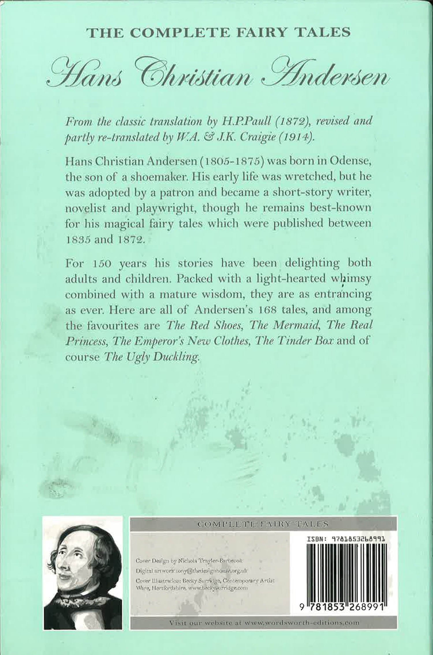For 150 years his stories have been delighting both adults and children. Packed with a light-hearted whimsy combined with a mature wisdom they are as entrancing as ever. Here are all of Andersen's 154 tales, and among the favourites are The Red Shoes, The Mermaid, The Real Princess, The Emperor's New Clothes, The Tinder Box and of course The Ugly Duckling.