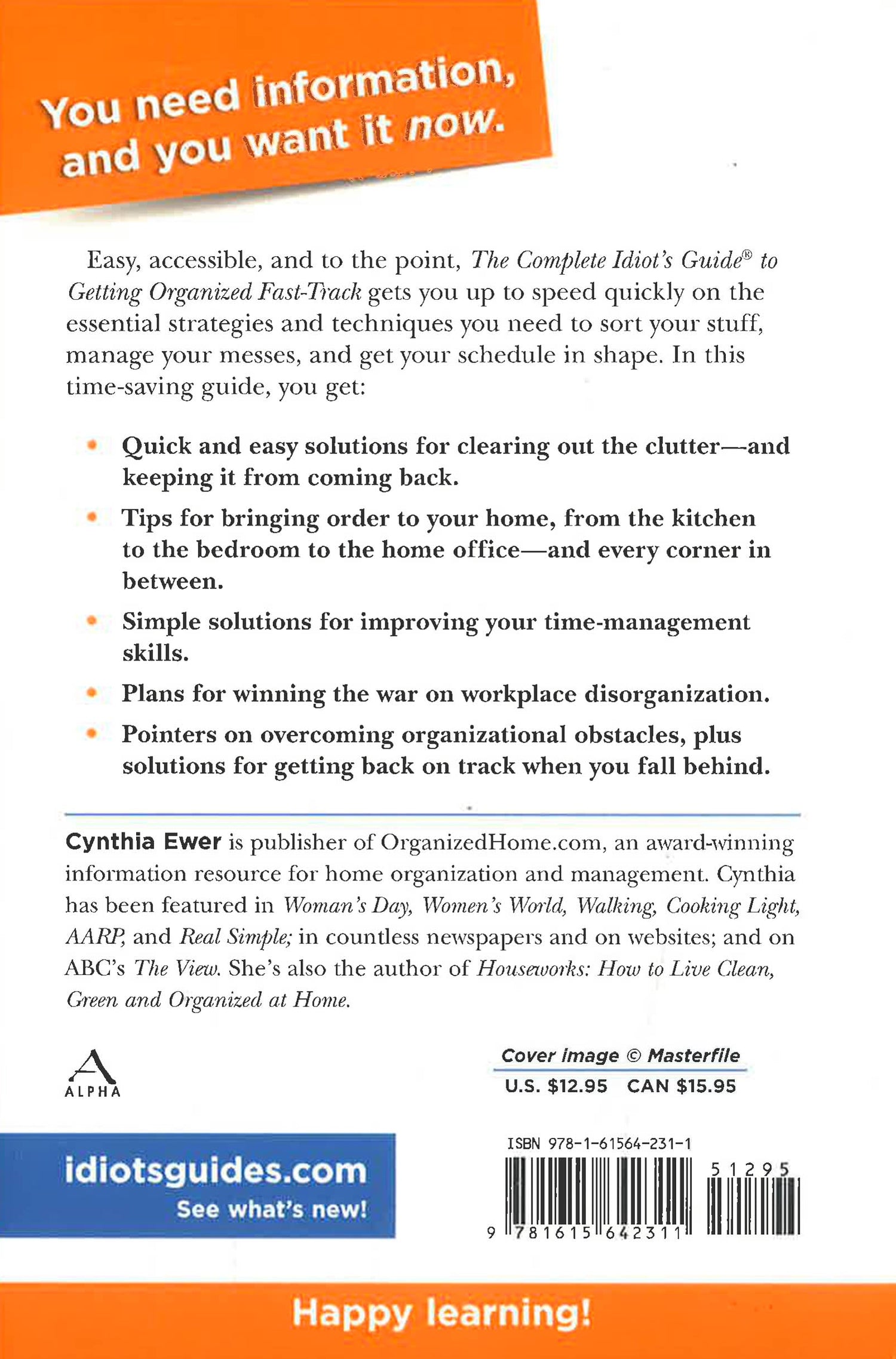 In our materialistic, time-crunched society, lifestyles are compromised by disorganization and clutter. In a 2008 National Association of Professional Organizers survey, 65 percent of respondents noted that their household was at least moderately disorganized, 71 percent said their quality of life would improve if they were better organized, and 96 percent of respondents indicated that they could save time every day by becoming more organized. A survey by IKEA reported that only 11 percent of Americans know where their Social Security cards are. Unfortunately, the problem has gotten so out of hand for so many, they have no idea where to begin. The Complete Idiot's Guide(R) to Getting Organized Fast-Track, finds readers where they are and helps them take the first steps toward a more organized and efficient life. In this book readers get:
