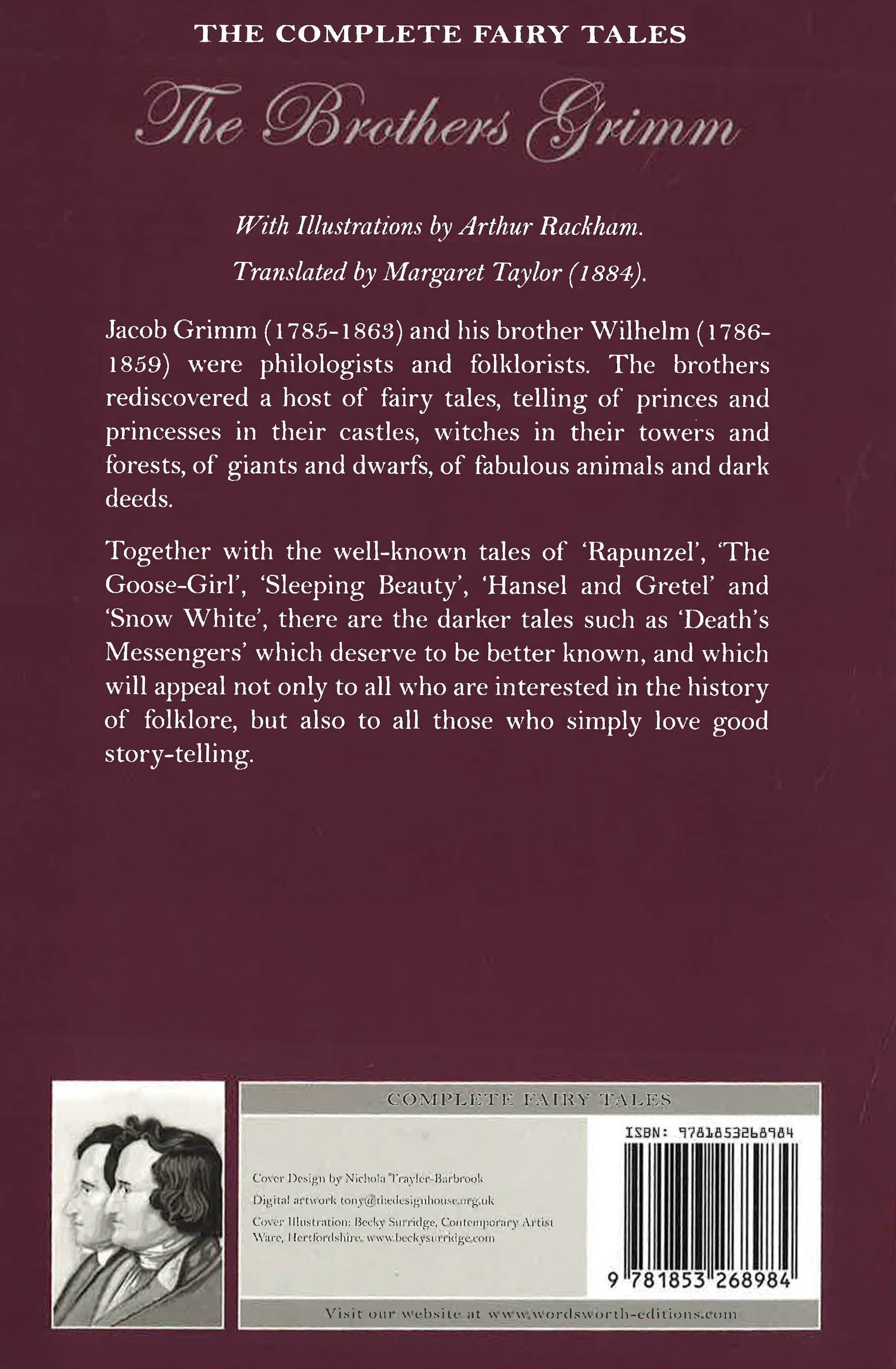 Jacob Grimm (1785-1863) and his brother Wilhelm (1786-1859) were philologists and folklorists. The brothers rediscovered a host of fairy tales, telling of princes and princesses in their castles, witches in their towers and forests, of giants and dwarfs, of fabulous animals and dark deeds. Together with the well-known tales of Rapunzel, The Goose-Girl, Sleeping Beauty, Hansel and Gretel and Snow White, there are the darker tales such as Death's Messengers which deserve to be better known, and which will appeal not only to all who are interested in the history of folklore, but also to all those who simply love good story-telling.