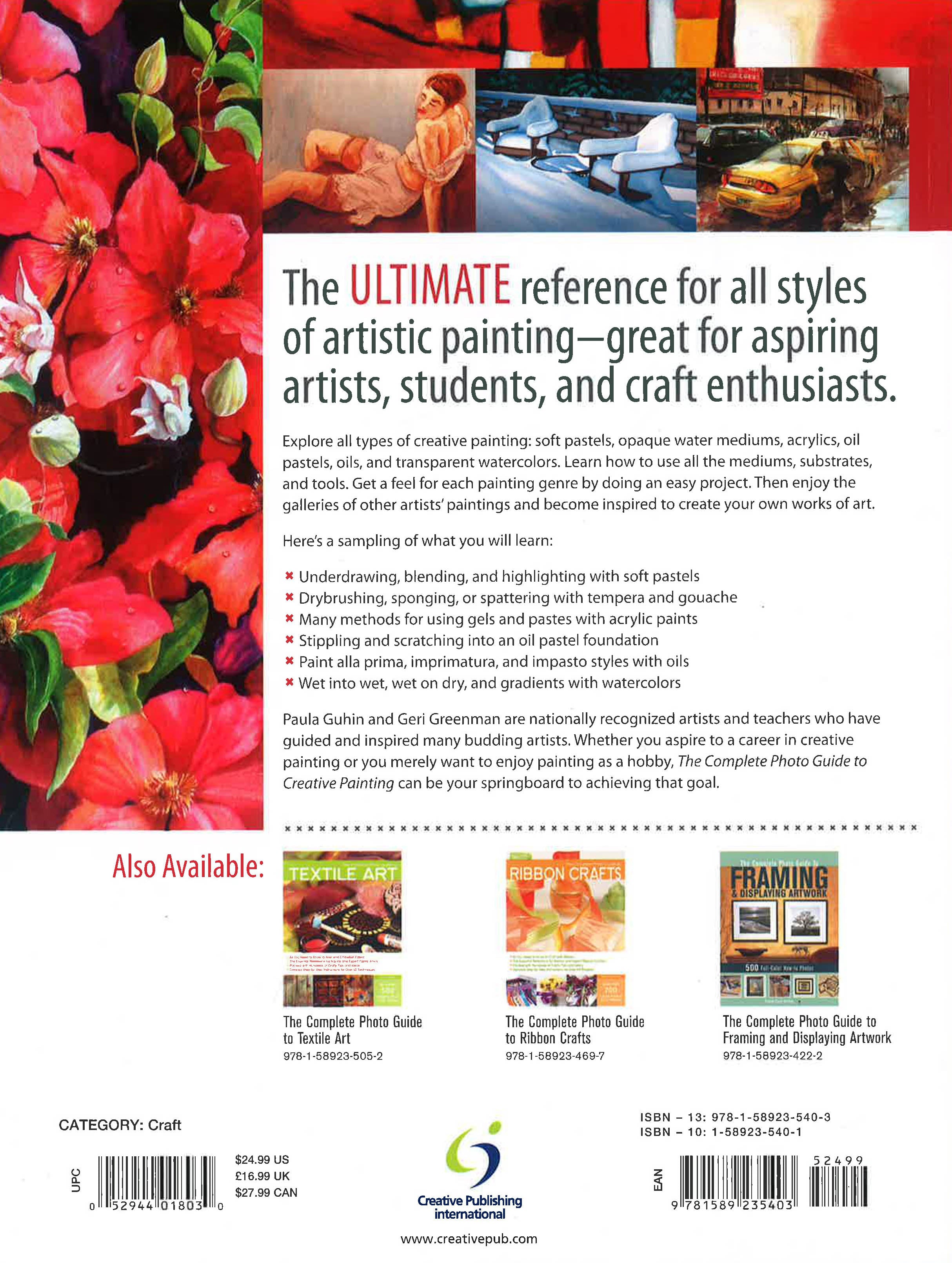 Learn all the aspects of creative painting with this comprehensive how-to guide! "The Complete Photo Guide to Creative Painting" provides easy-to-follow techniques for painting with all types of craft and fine arts paints, including acrylics, oils, tempera, watercolor, and pastels. You'll find easy access to information with step-by-step directions and 700 full-color photos for clear understanding. Galleries of artwork by a wide range of artists offer beautiful examples of what can be done with each of the painting categories. Find expert tips, skills, and inspiration with "The Complete Photo Guide to Creative Painting.