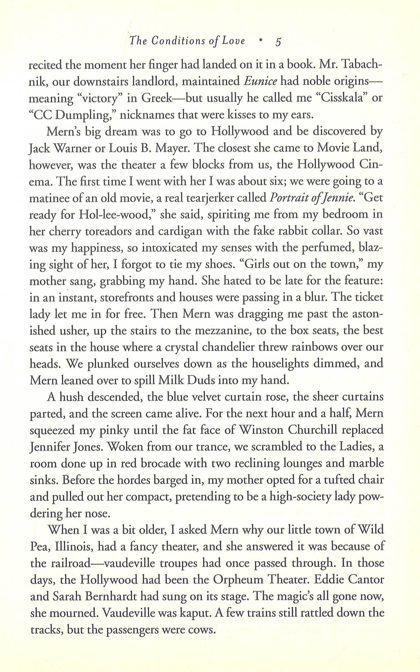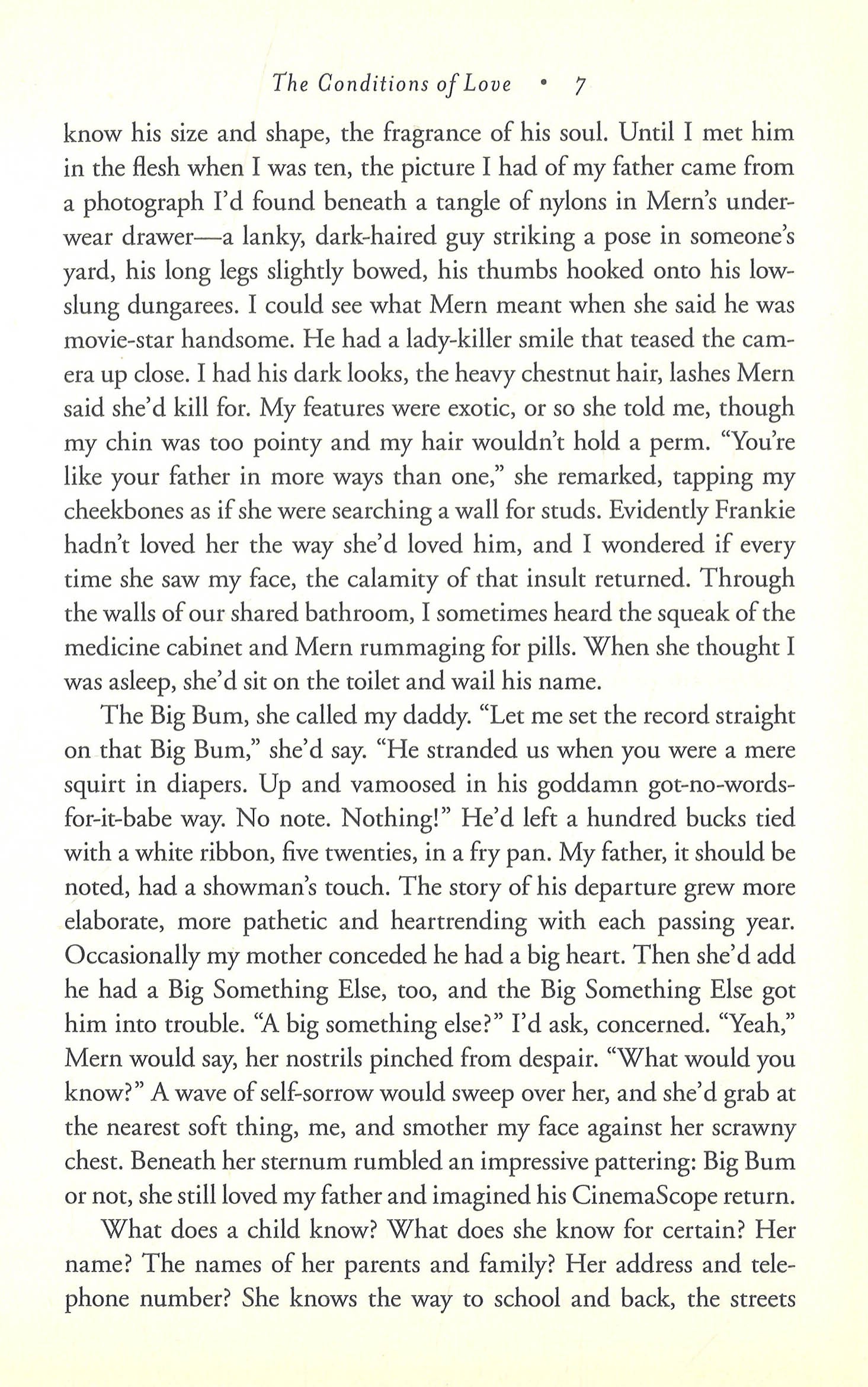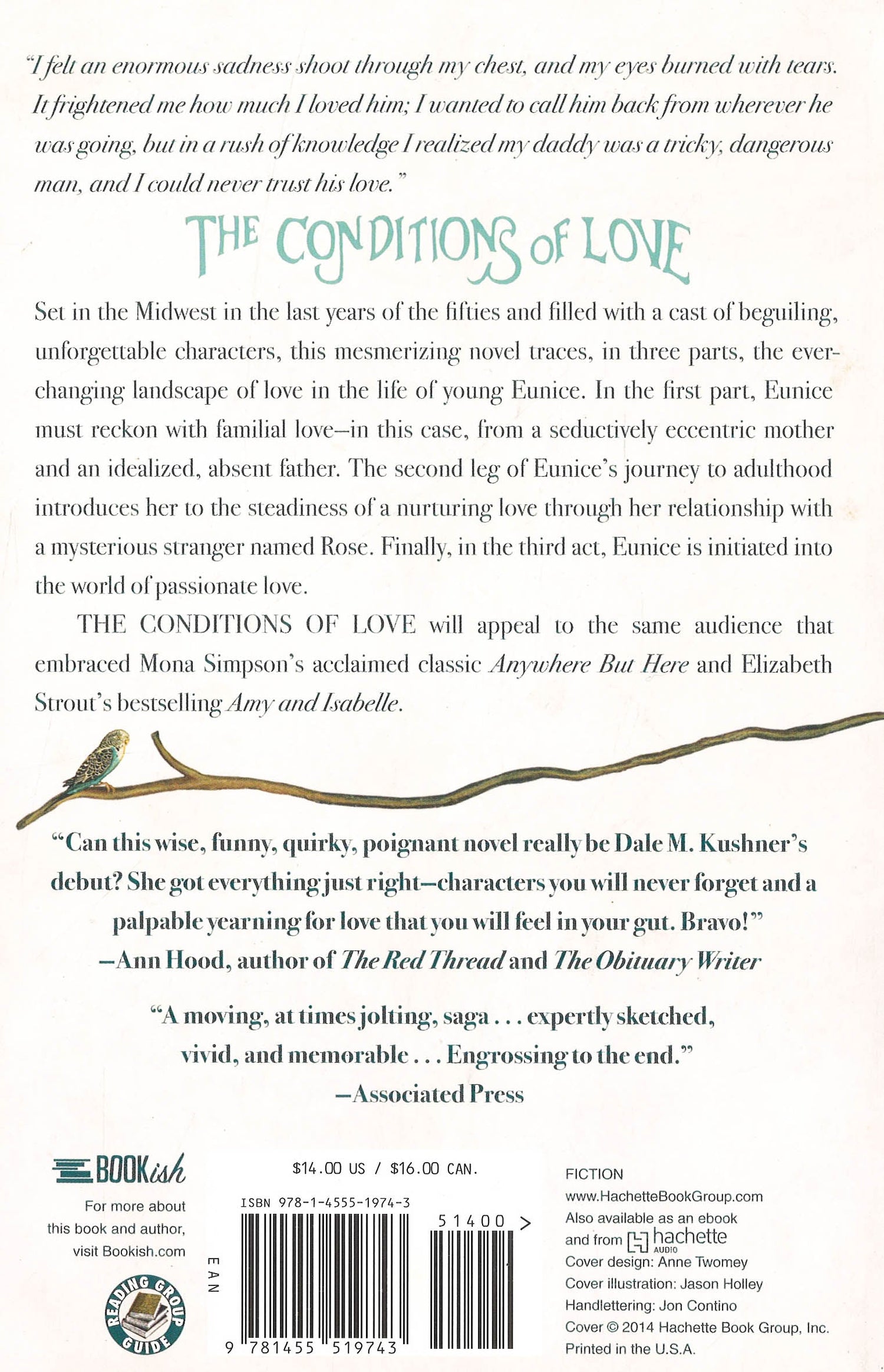 Dale M. Kushner's novel The Conditions of Love traces the journey of a girl from childhood to adulthood as she reckons with her parents' abandonment, her need to break from society's limitations, and her overwhelming desire for spiritual and erotic love. In 1953, ten-year-old Eunice lives in the backwaters of Wisconsin with her outrageously narcissistic mother, a manicureeste and movie star worshipper. Abandoned by her father as an infant, Eunice worries that she will become a misfit like her mother. When her mother's lover, the devoted Sam, moves in, Eunice imagines her life will finally become normal. But her hope dissolves when Sam gets kicked out, and she is again alone with her mother. A freak storm sends Eunice away from all things familiar. Rescued by the shaman-like Rose, Eunice's odyssey continues with a stay in a hermit's shack and ends with a passionate love affair with an older man. Through her capacity to redefine herself, reject bitterness and keep her heart open, she survives and flourishes. In this, she is both ordinary and heroic. At once fable and realistic story, The Conditions of Love is a book about emotional and physical survival. Through sheer force of will, Eunice saves herself from a doomed life. This engaging examination of a mother and daughter's relationship will appeal to the same audience that embraced Mona Simpson's acclaimed classic Anywhere But Here and Elizabeth Strout's bestselling Amy and Isabelle.