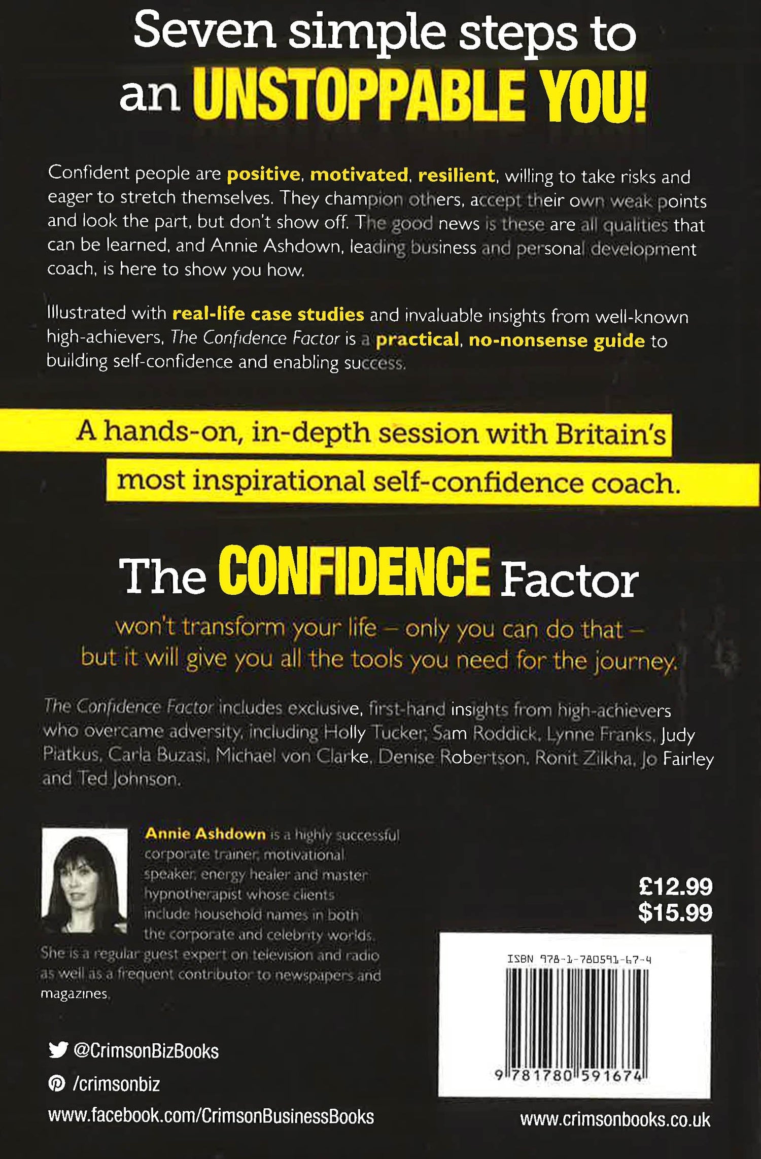 If you don't have confidence within yourself, why would anyone else have confidence in you? A lack of self confidence can affect anybody, whether you're the director of a company or a student at university, you can be taken advantage of, passed over for promotion without achieving your potential. When you have self-esteem, assertiveness and confidence you stand up for yourself, you know what you want and go for it. You are the best you can be. Annie Ashdown, Harley Street Master Hypnotherapist and Confidence Coach, had no confidence for many years, but gradually developed the 7 secrets to self-confidence which transformed her life. Packed with insightful advice, top tricks and tips from successful people and practical techniques, The Confidence Factor reveals the secrets for gaining confidence, explains what is confidence and how to be confident, discover: Accessible advice and practical tips on gaining self-confidence Straightforward techniques that have immediate effect The confidence tricks high-profile successful people use The seven traits of self-confident people The Confidence Factor will explain the 7 simple steps to getting confident and mastering your emotions so you can feel strong whatever life throws at you.